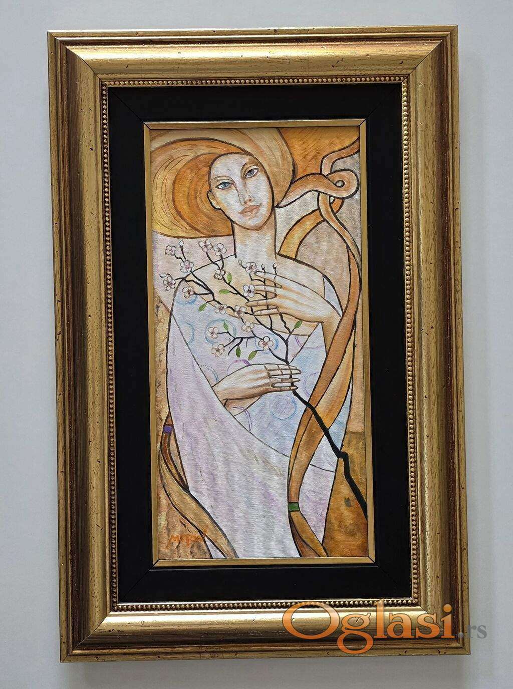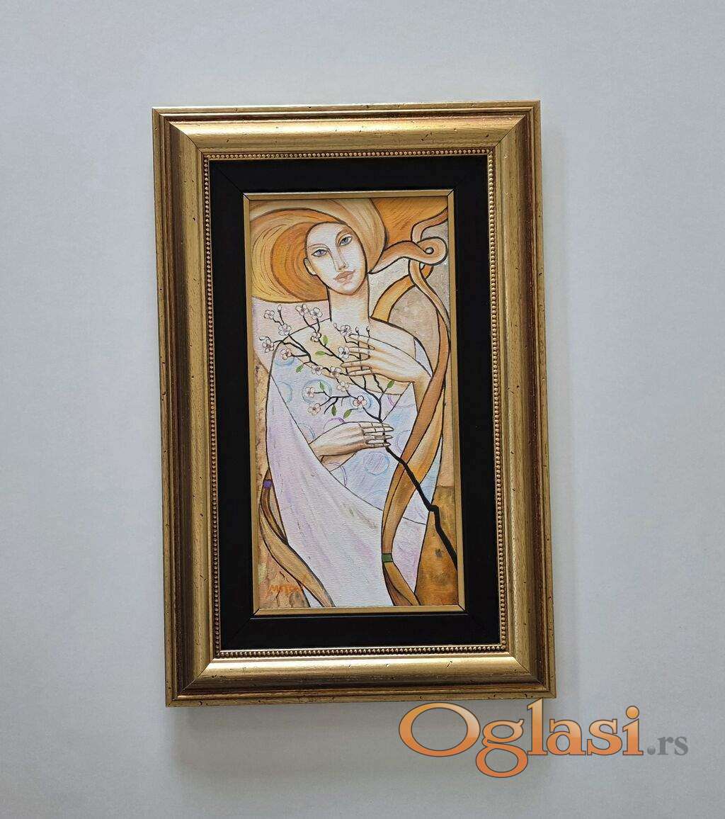 Ulje na platnu Prolecna dama, prelepo umetnicko delo. Slika je uramljena u jako lep ram, dimenzije slike sa ramom 58 x 38. Privatna kolekcija.