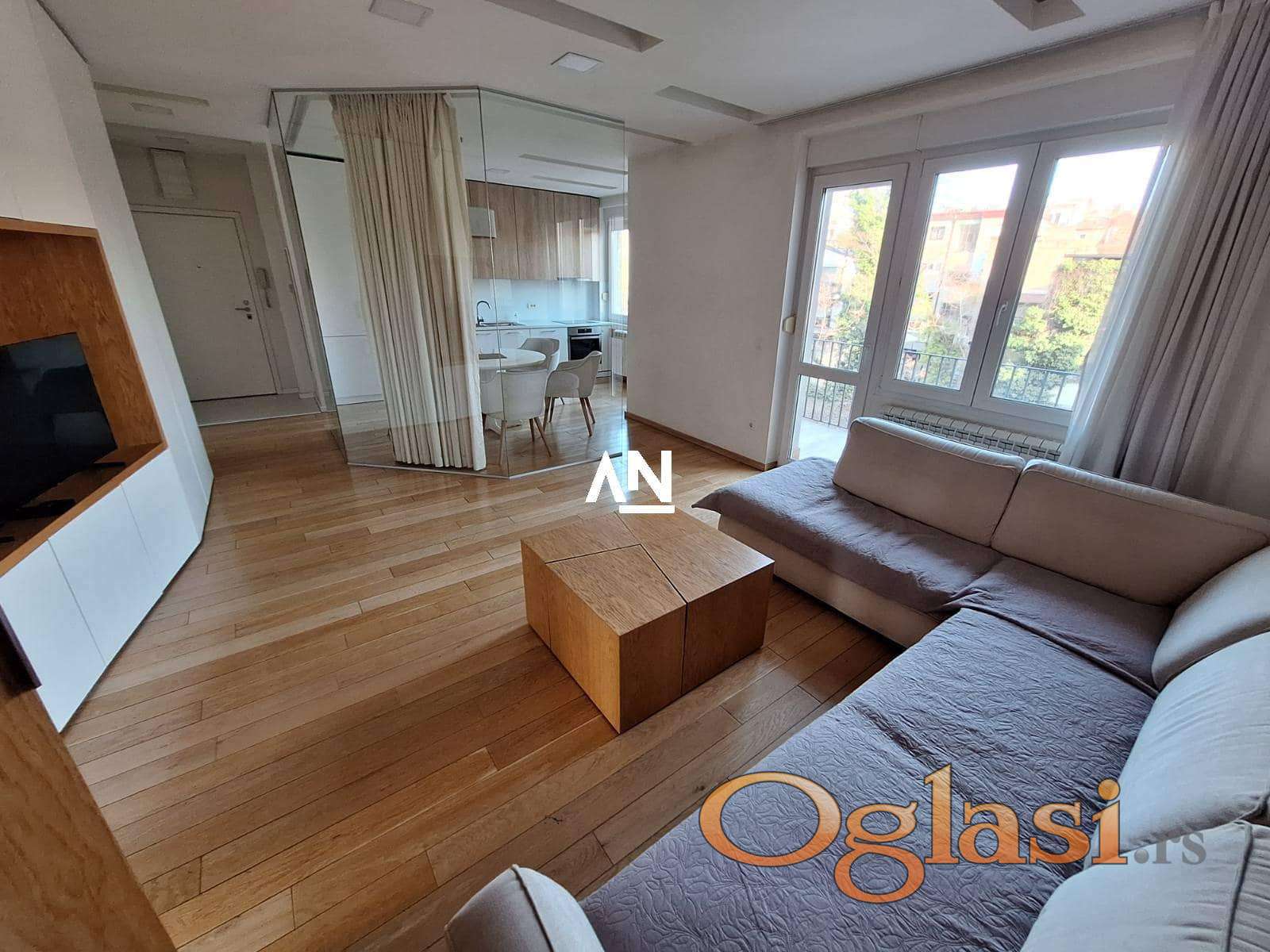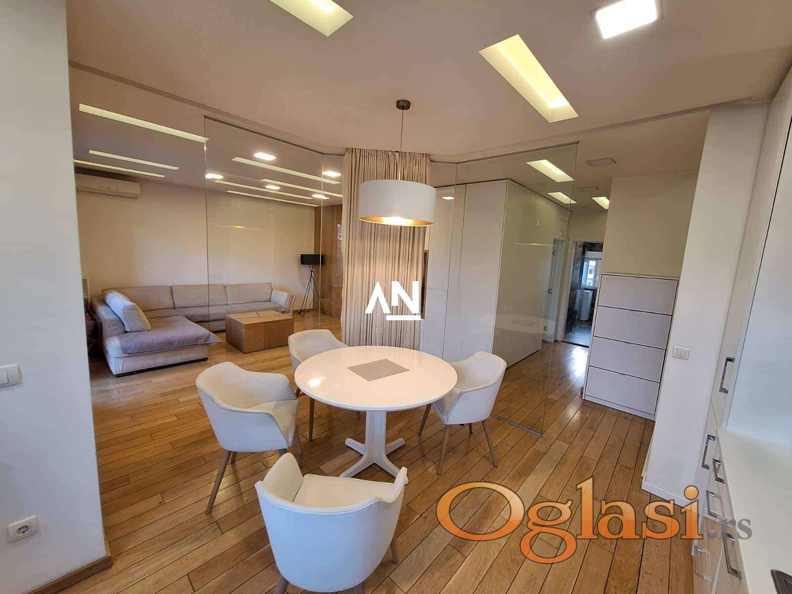 Stan je dvostrano orijentisan, sa dve terase – jednom ka ulici i drugom ka mirnom dvorištu, idealnom za opuštanje. Enterijer je pažljivo uređen, sa nameštajem i tehnikom vrhunskog kvaliteta.