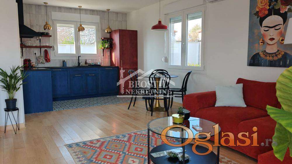 Raspored i funkcionalnost odgovaraju komfornom porodičnom stanu, uz direktnu povezanost sa dvorištem i prirodom.