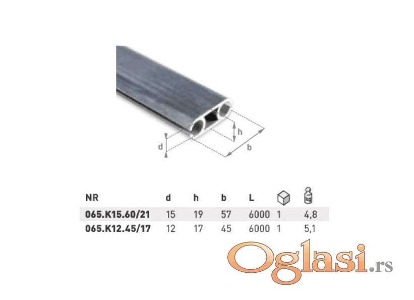 Aluminijumski profil za keder dupli 065. K12.45/17 8221 din/kom