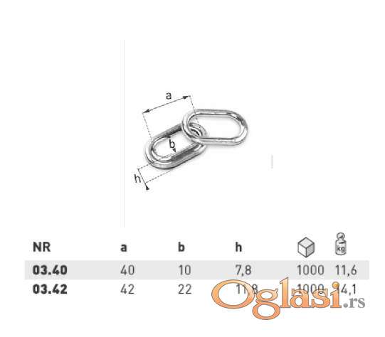 Ringlica ovalna (Galvanizovani) 40x10 mm 03.40 13 din/kom
