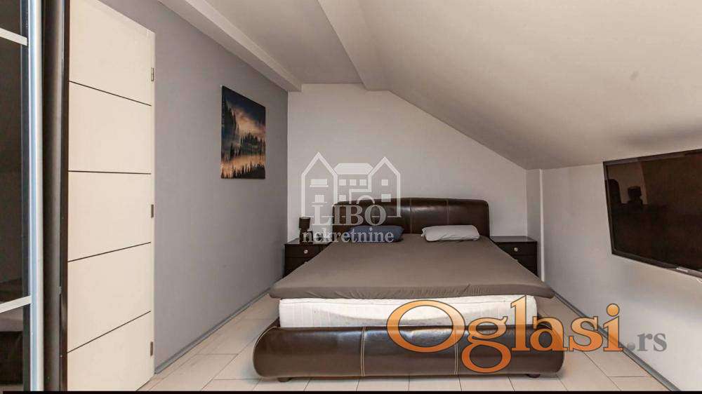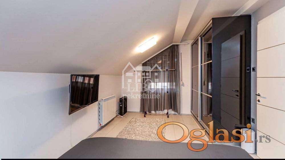 U prilici smo da Vam ponudimo NOV, komplet namešten stan u zgradi bez lifta. stan je duplex gde je prva etaža P=132m2 i sastoji se od : ulazni hodnik, dnevna soba, kuhinja, trpezarija, 3 spavaće sobe, kupatilo, toalet, vešernica i 2 terase. Potkrovlje je u sivoj fazi P=67m2, Nova, kvalitetno izgrađena zgrada -PVC stolarija sa roletnama, Veluks prozori,kvalitetna podna keramika i sanitarija. Uz stan ide i podrum i parking mesto u dvorištu zgrade. Stan je uknjižen, ima upotrebnu dozvolu, može kupovina iz kredita i mogućnost povraćaja PDV-a. Za više informacije pozovite 065/555 3922. Libo agencija upisana u registar posrednika br 2034