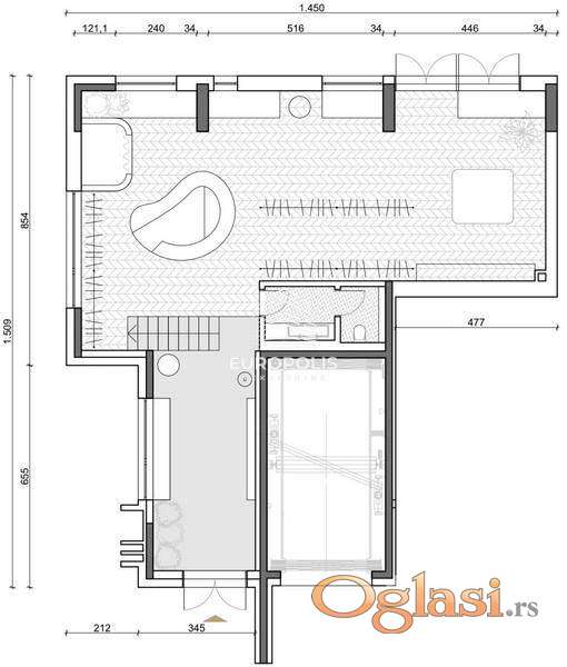 Raspored prostorija: Poslovni prostor, toalet.