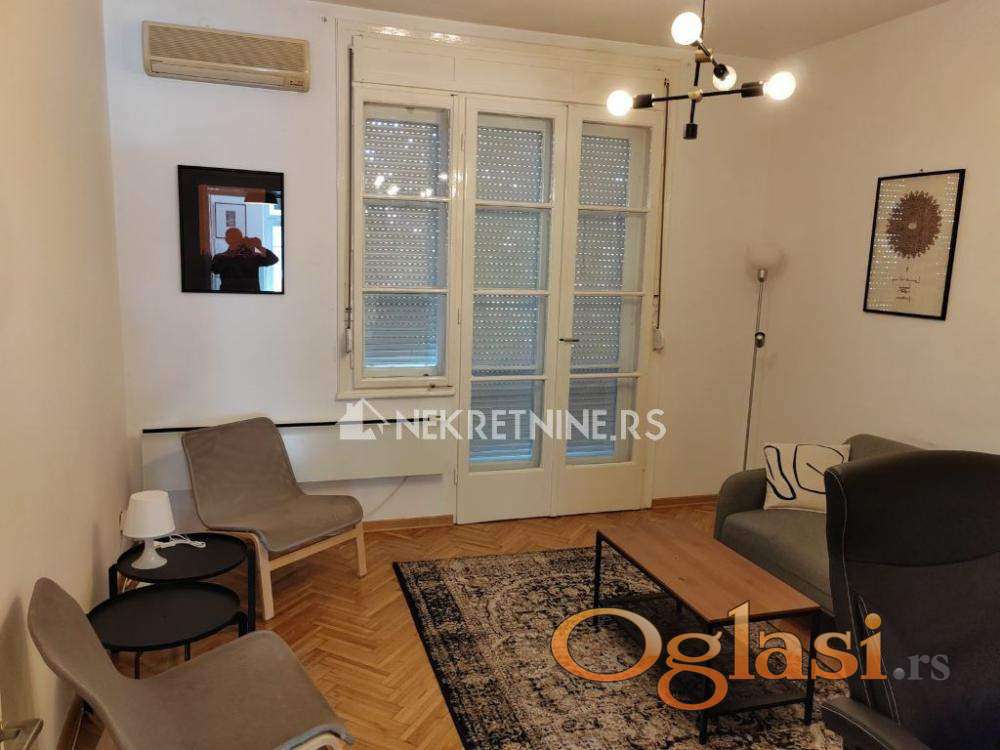 Izdaje se lep salonski stan površine 62 m², smešten na 3. spratu uredne stambene zgrade sa liftom, u samom centru grada.