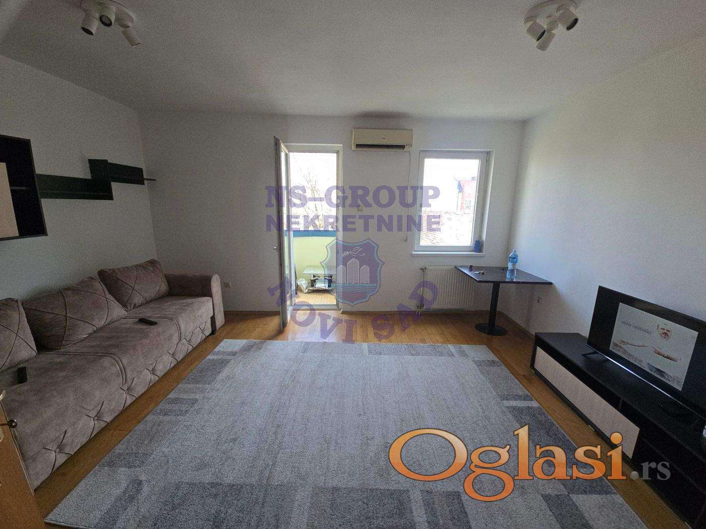 Jednosoban stan na samo par minuta od strogog centra grada. Nekretnina se izdaje nameštena. Stan sa komplet opremljenom izdvojenom kuhinjom, veliki dnevni boravak, kupatilo sa veš mašinom, terasa. U stanu su dozvoljeni kućni ljubimci.