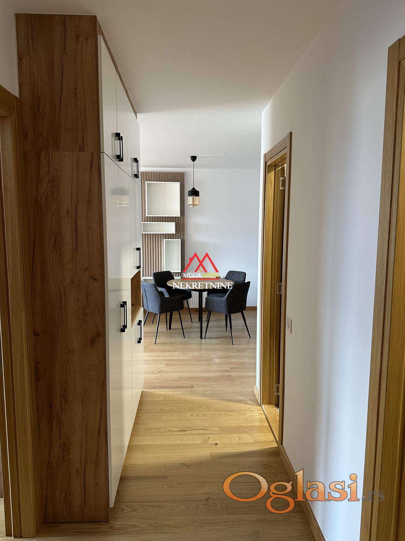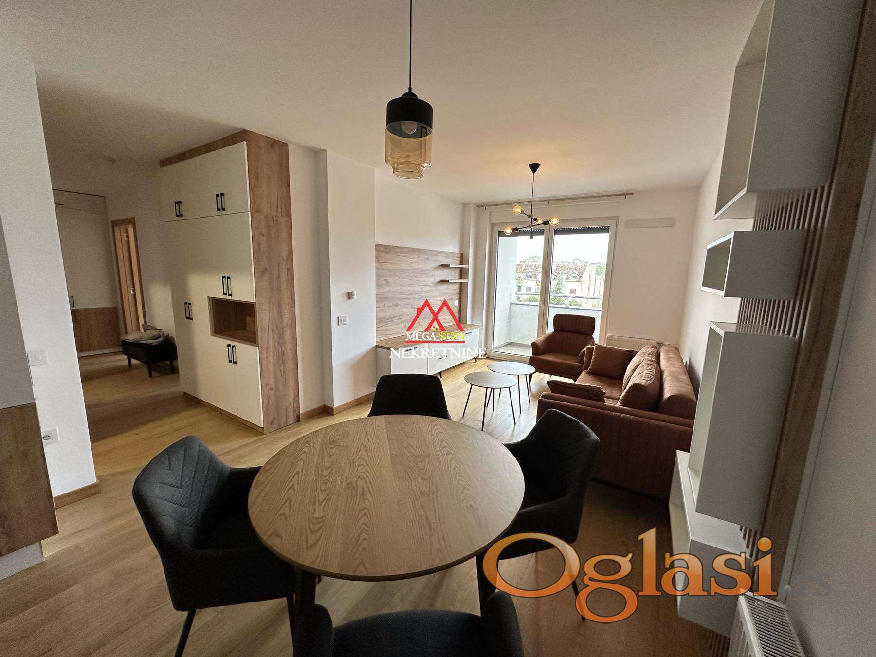 Stan je kompletno opremljen modernim i funkcionalnim nameštajem, kao i svim potrebnim uređajima za udoban boravak. Dnevni boravak, kuhinja sa trpezarijom i dve spavaće sobe čine prostor praktičnim i udobnim. Druga soba može poslužiti kao radna soba ili dečija soba – prema potrebama zakupca. Sve je spremno za useljenje bez dodatnih ulaganja.