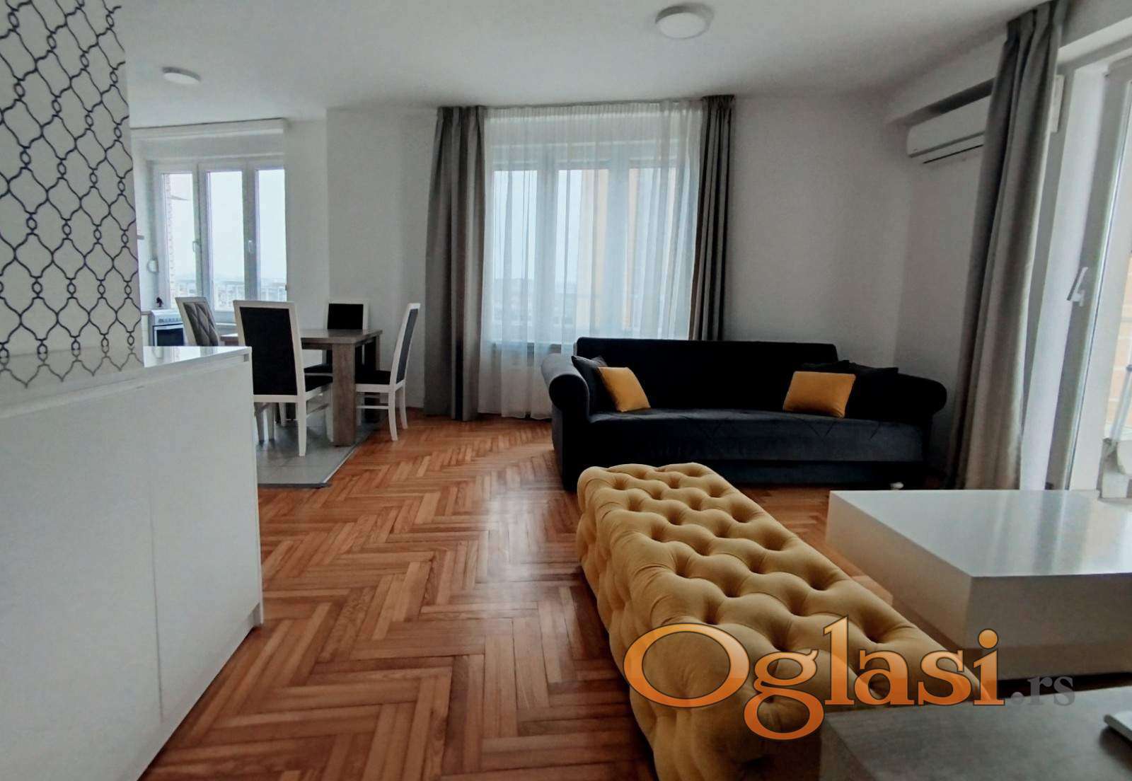 Stan je potpuno namešten i opremljen svim potrebnim uređajima (bela tehnika, klima), spreman za useljenje bez dodatnih ulaganja.