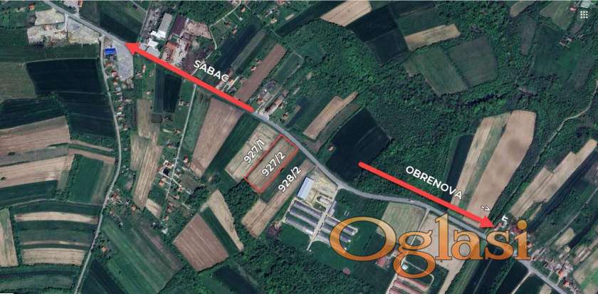Odličan građevinski plac, površine 40 ari. Na samom magistralnom putu Šabac - Obrenovac - Beograd.