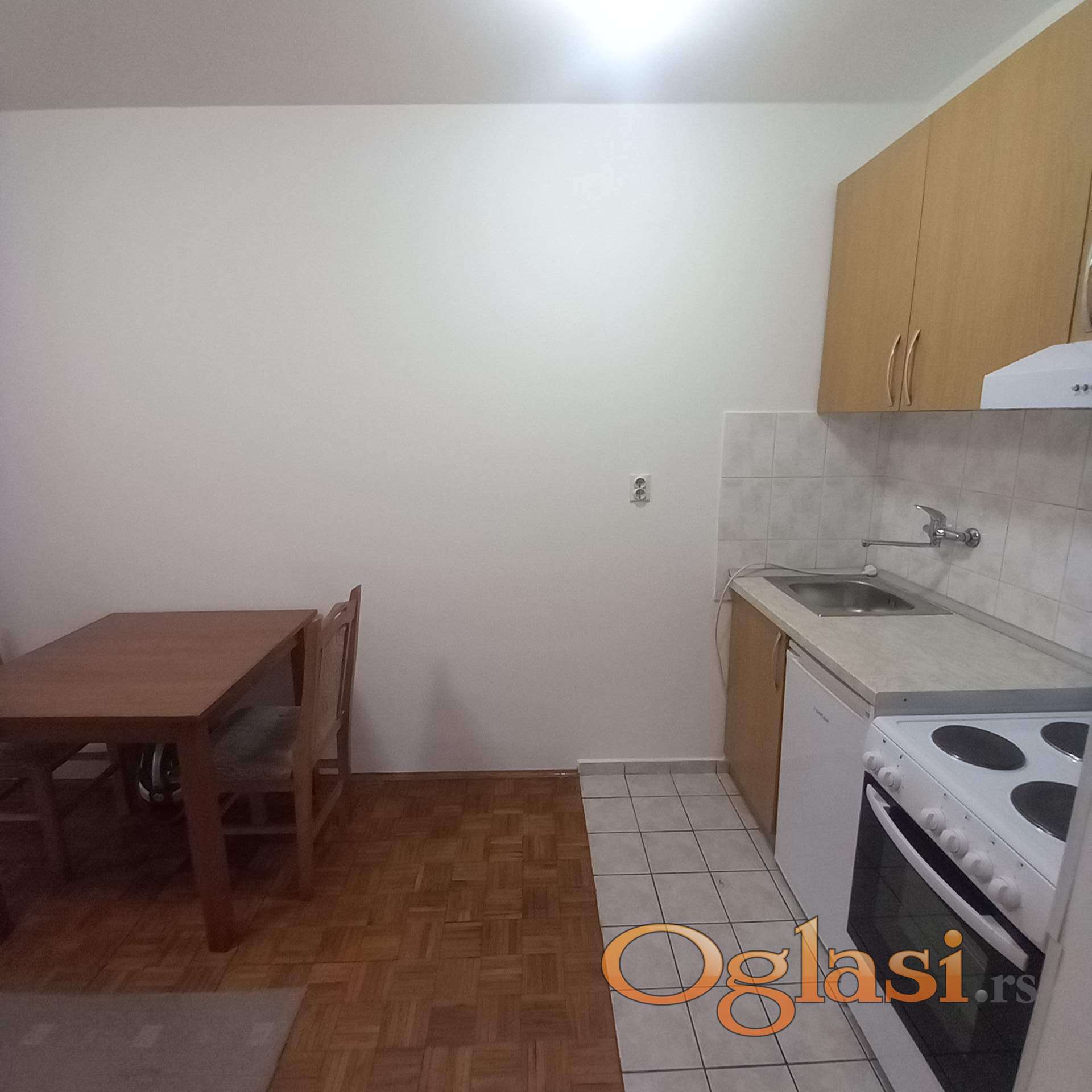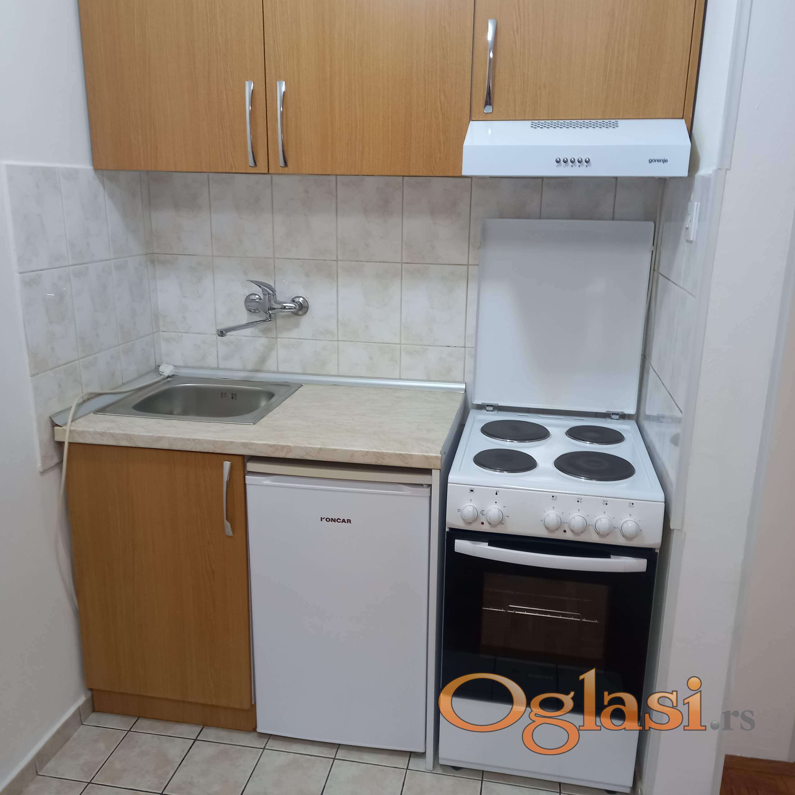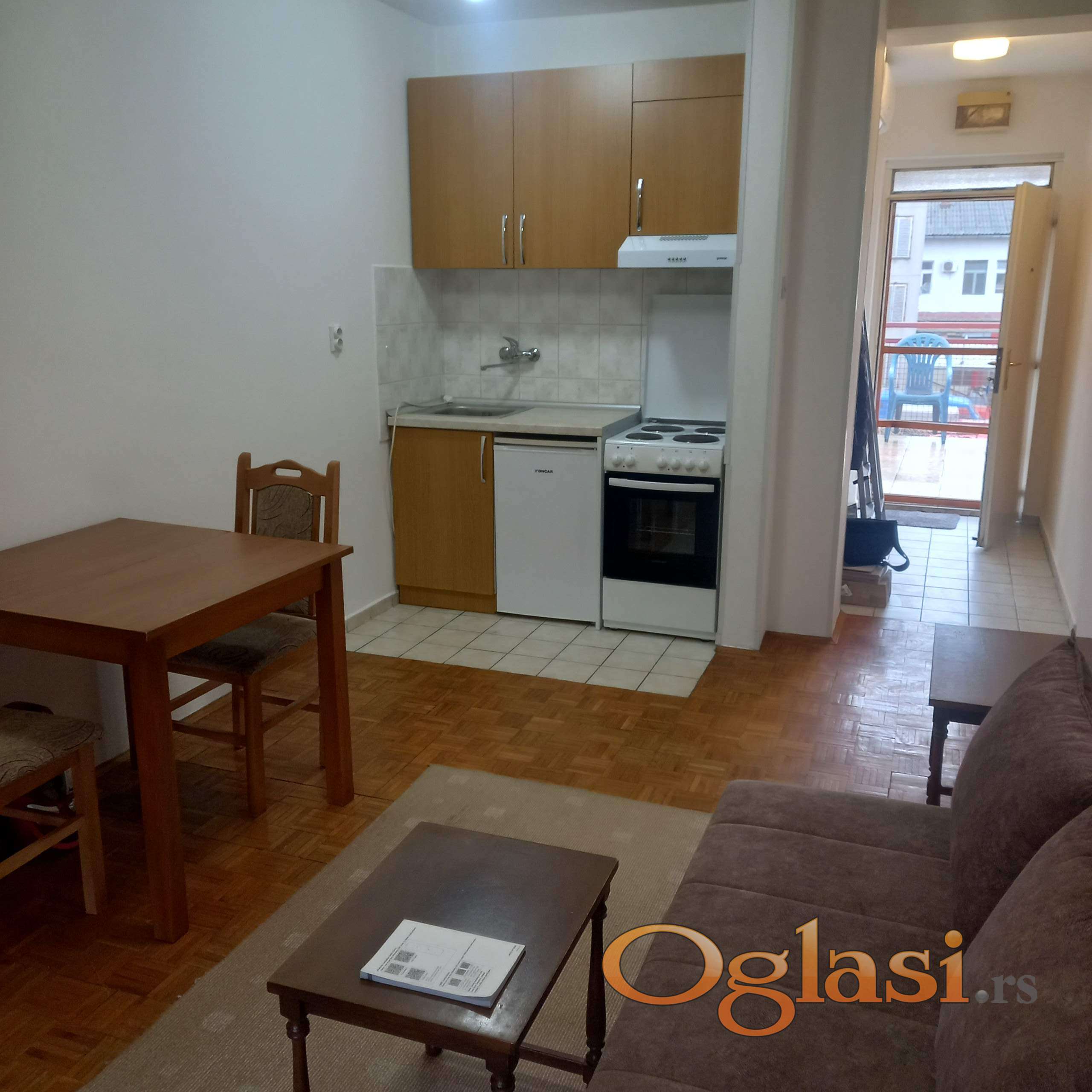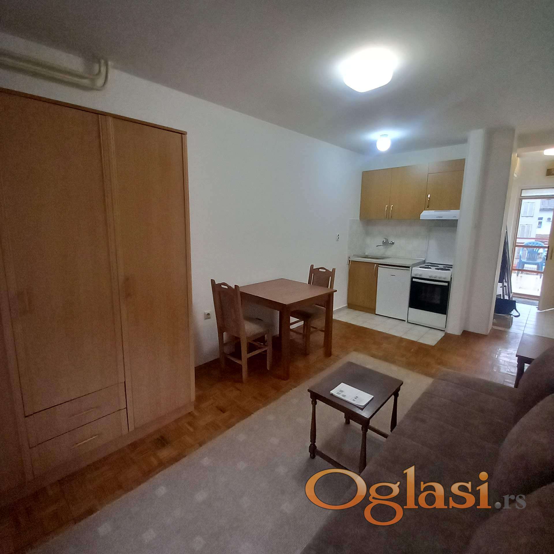Uredana i okrečena garsonjera sa terasom, dvostrano orijentisana. Opremljena kuhinjskim elementima sa šporetom i mini frižiderom. Veš mašina u kupatilu.