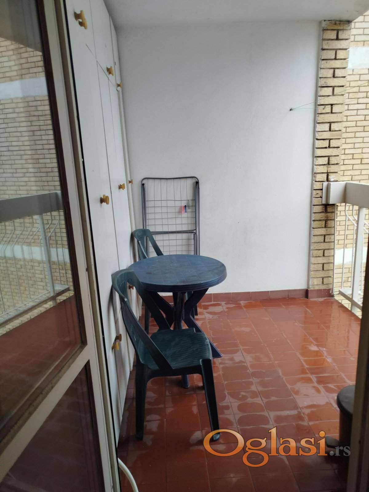 Kuhinja je odvojena od sobe. Ima veliku terasu sa plakarom.