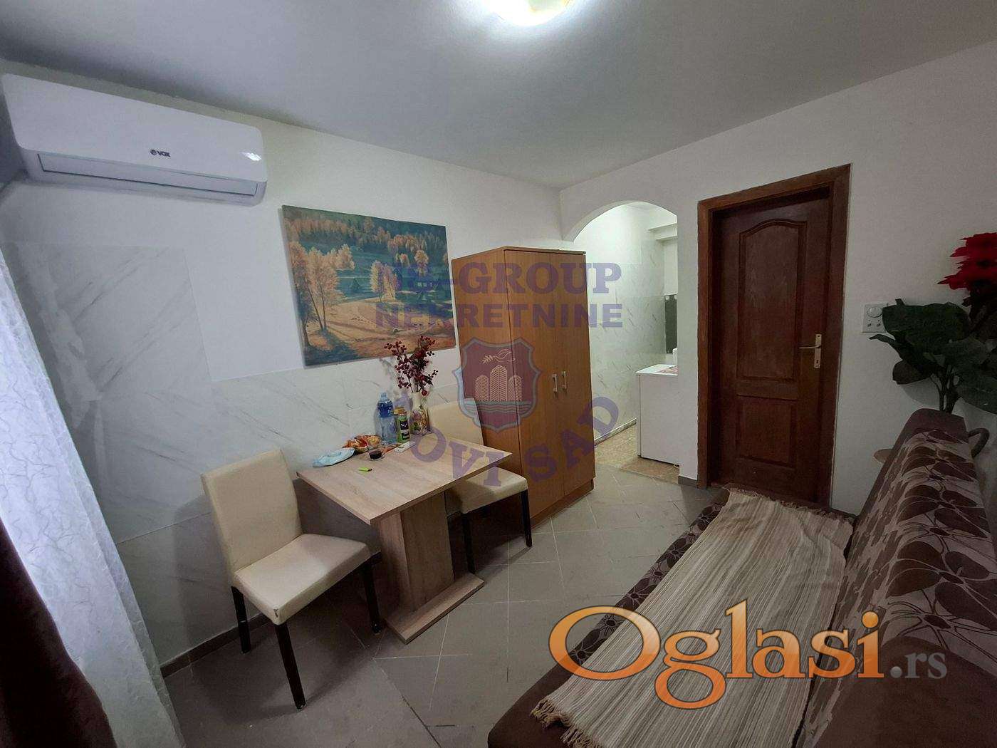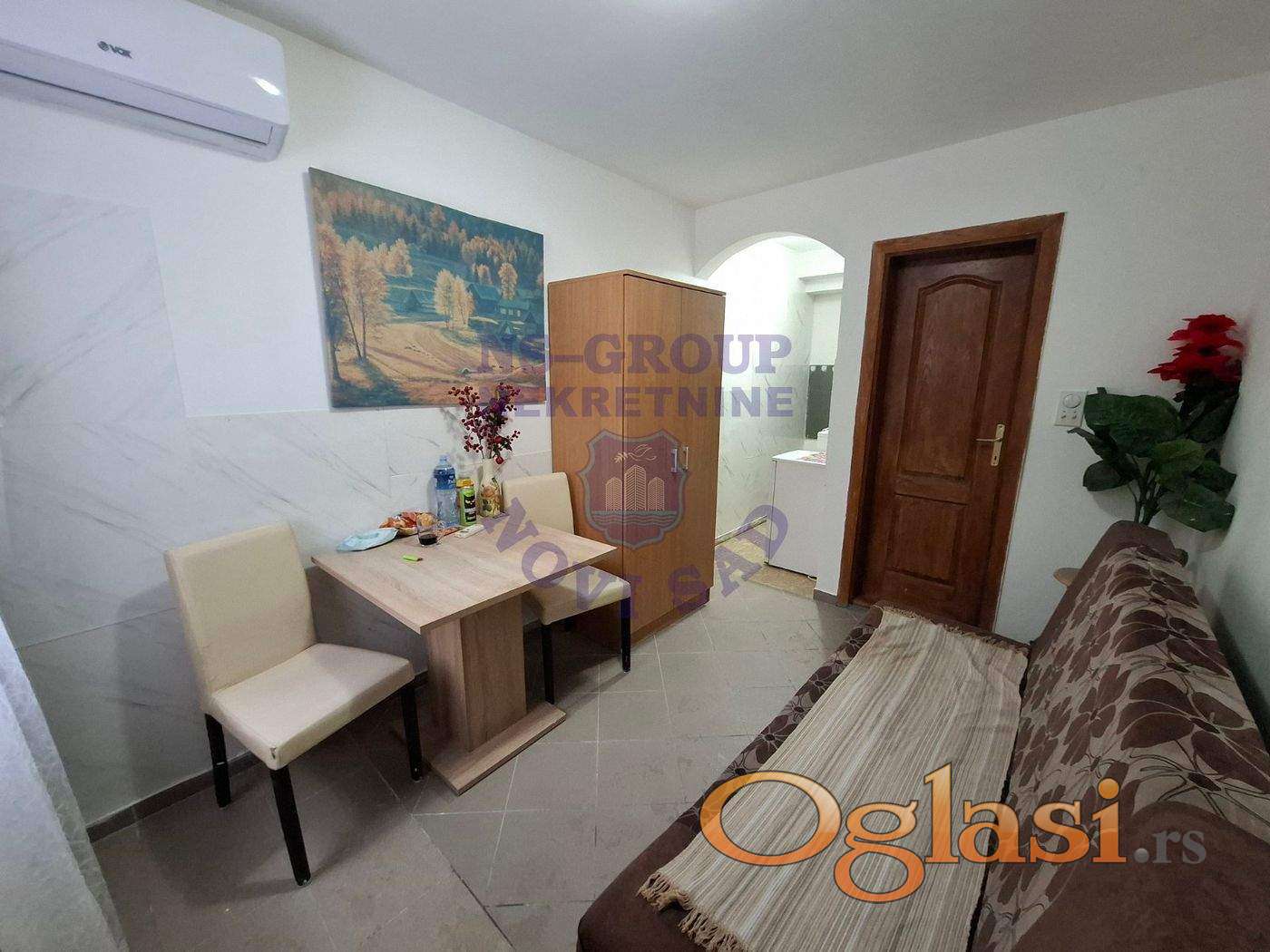 Garsonjera u prizemlju zgrade. Odlična za stanovanje kao i za iznajmljivanje. Uknjižena 1/1 na vlasnika. Grejanje je na gas, tako da su niski režijski troškovi. Za više informacija pozovite.