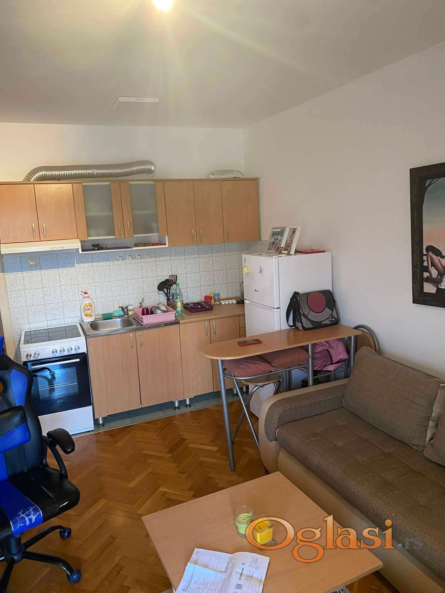 Garsonjera je u novijoj zgradi, ima 32 kvadrata sa lepom dvorisnom terasom. Lepo je namestena, ima sve dodatke i kao i garazno mesto u dvoristu pa dajem i daljinski od kapije. Cena izdavanja je 250 Evra mesecno i slobodna je od 15.04.2026. Usluzni telefon je 061 6497229.