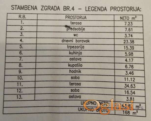 Površina kuće: 168 m² bruto / 143.82 m² neto