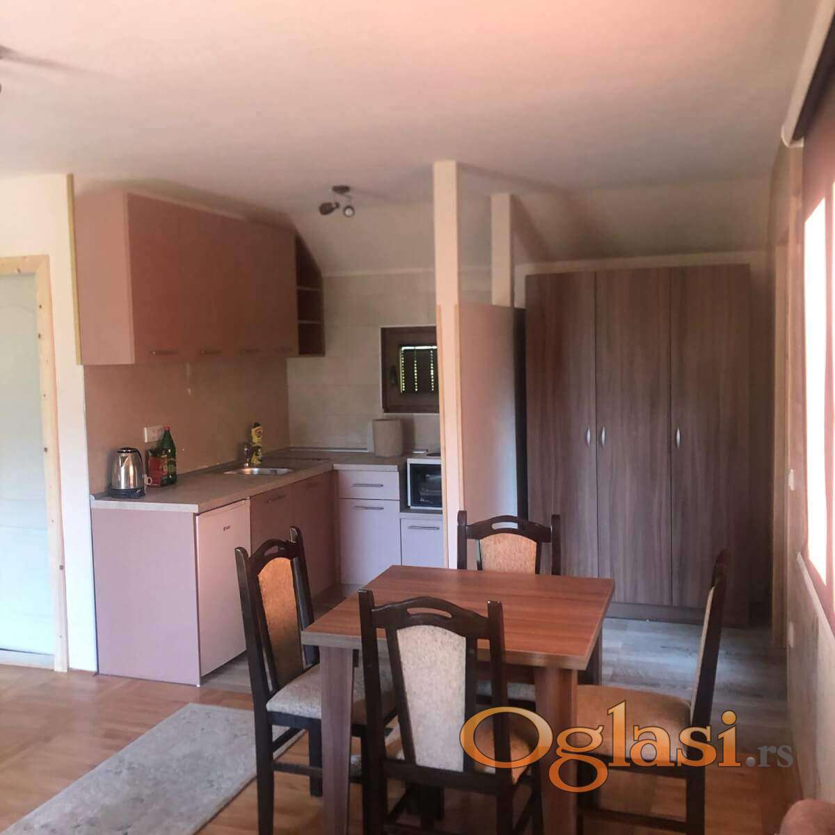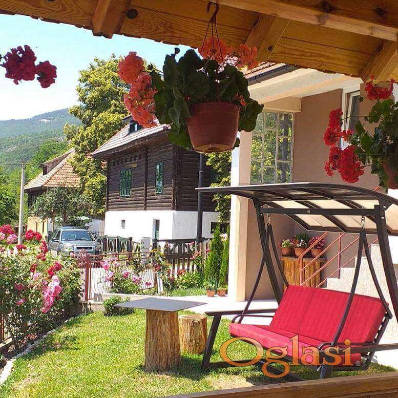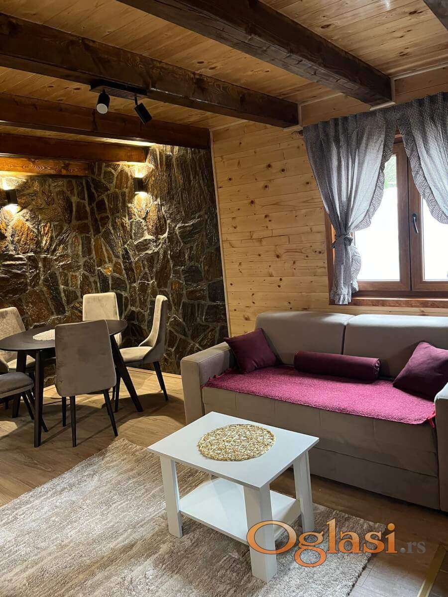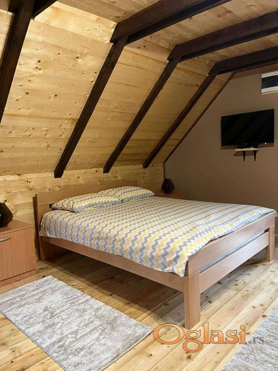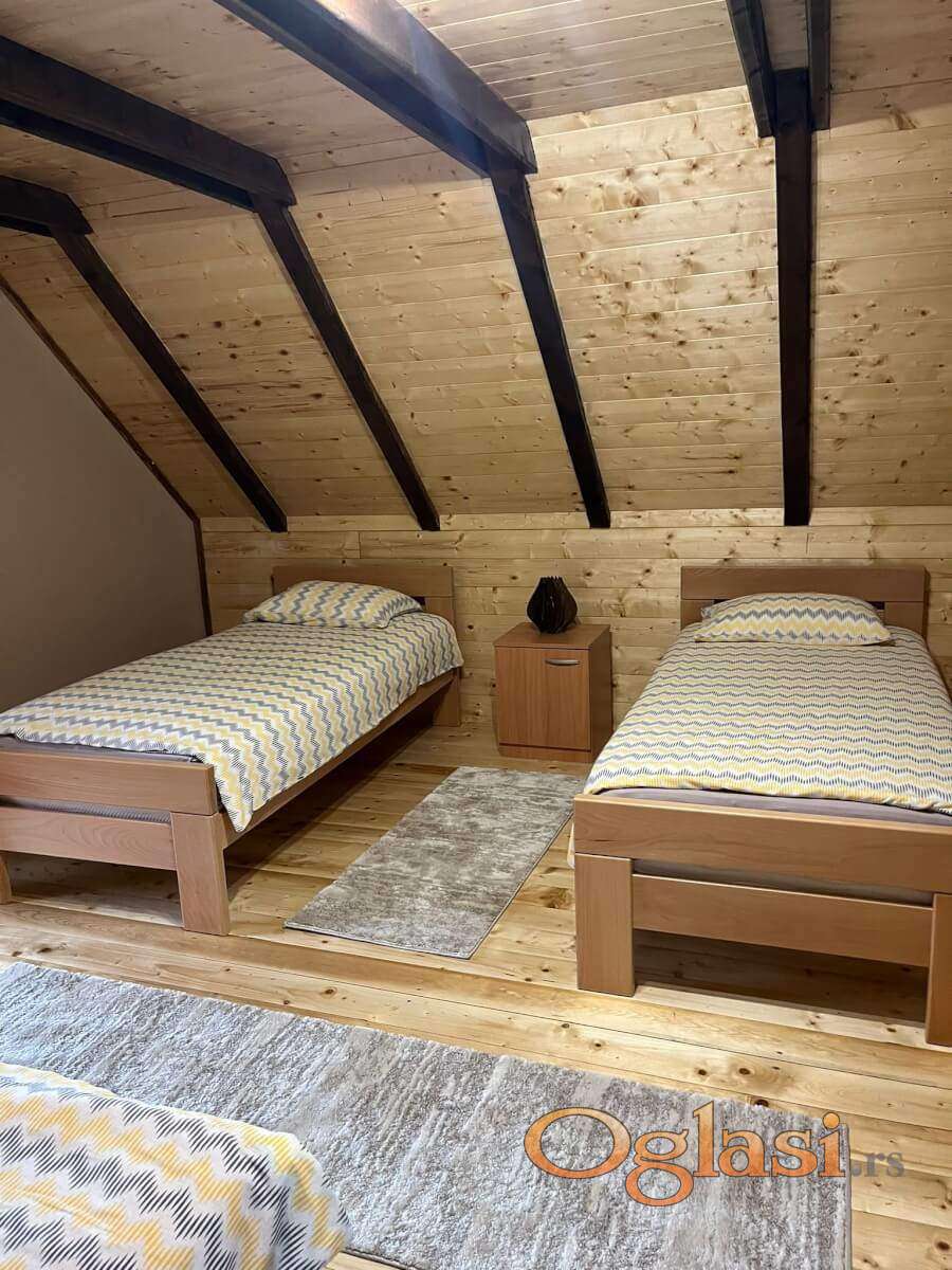 Svaka od brvnara je zaseban objekat za sebe i poseduje veliki krevet na razvlačenje za dve osobe dok u spavaćoj sobi ima bračni krevet i dva singl kreveta što čini ukupan spavaći kapacitet - do 6 osoba. U odvojenom objektu postoje dva studija čiji je kapacitet do 4 osobe i u svakom od njih se nalazi bračni krevet, singl krevet i dvosed koji se po potrebi razvlači. Takođe tu se nalazi i jedan mini studio koji je za dve osobe i poseduje dvosen na razvlačenje. Gostima je na raspolaganju prirodno okruženje, tišina i svež planinski vazduh, uz dovoljno prostora za druženje i opuštanje. Smeštaj je pogodan kako za kraći beg od svakodnevice, tako i za duži boravak, uz odličnu polaznu tačku za obilazak Mokre Gore, Drvengrada i okolnih prirodnih lepota.