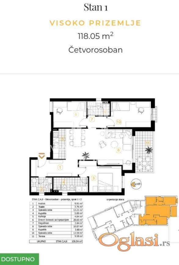 Stan kvadrature (107,73m²) nalaze se na visokom prizemlju SLOBODAN JE i na prvom spratu OD 118m2 je slobodan.