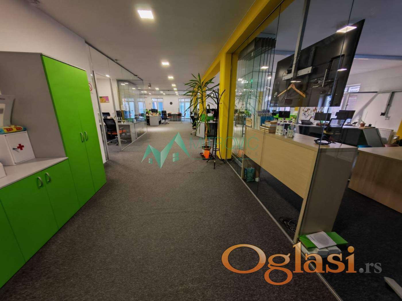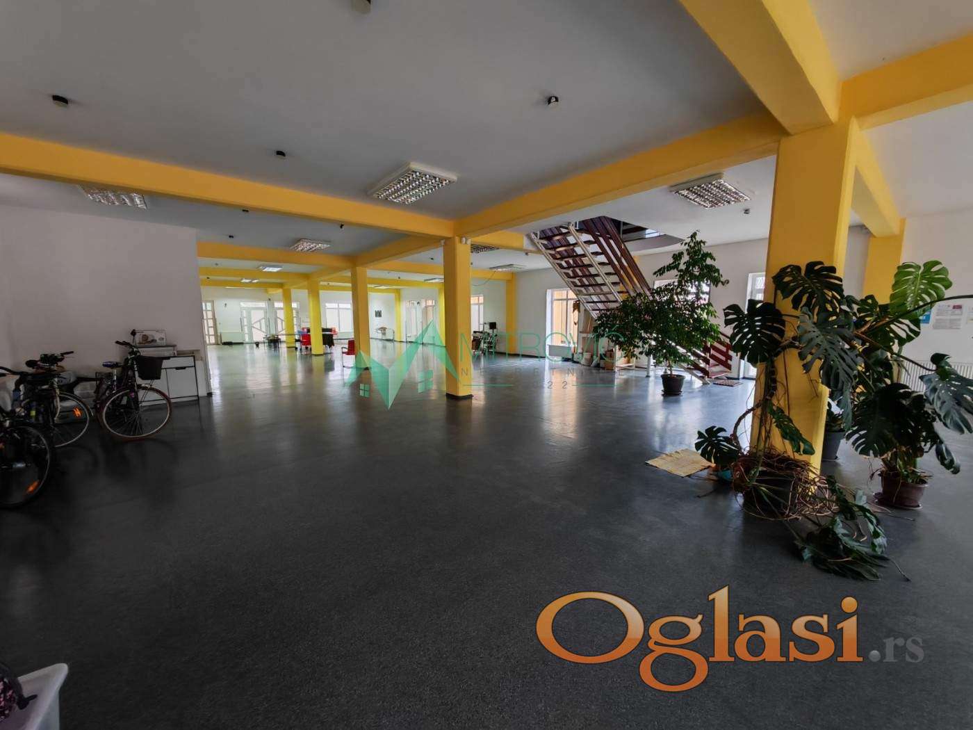 Poslovni objekat koji je zbog svoje veličine i otvorenog koncepta, odličnog pristupa i dovoljno parkinga za korisnike (15 tak parking mesta) pogodan za višestruke namene. Od IT sektora, kancelarija, fitnes centar, magacin... Novija poslovna zgrada, PRIZEMLJE + SPRAT. Korisna površina 720 m2 u dve etaže. Osnova objekta (prizemlje ) površine oko 380m2. Pristup sa dve strane, ograđeno i uređeno dvorište, kapija, moguć ulaz vozilom u objekat. Teretni lift. Prizemlje visine 320cm otvorenog koncepta sa muško ženskim toaletima. Na spratu je kuhinjsko-trpezarijski deo, 3 odvojene kancelarije, toaleti i više radnih mesta, što spojenih što odvojenih staklenim pregradama. Prostor koji se može lako prilagoditi drugačijim potrebama zakupca. Zbog pozicije i mogućnosti koji nudi veoma je pogodan za razne delatnosti. Sprat je opremljen kancelarijskim nameštajem koji može ostati po potrebi. Grejanje na gas i inverter klime ( 6 ). Jedan depozit obavezan a visina agencijske naknade je u visini zakupnine. Zakup na duži period. Slobodno od 01.05. Pozovite 0693831007 - Daniel i zakažite razgledanje.