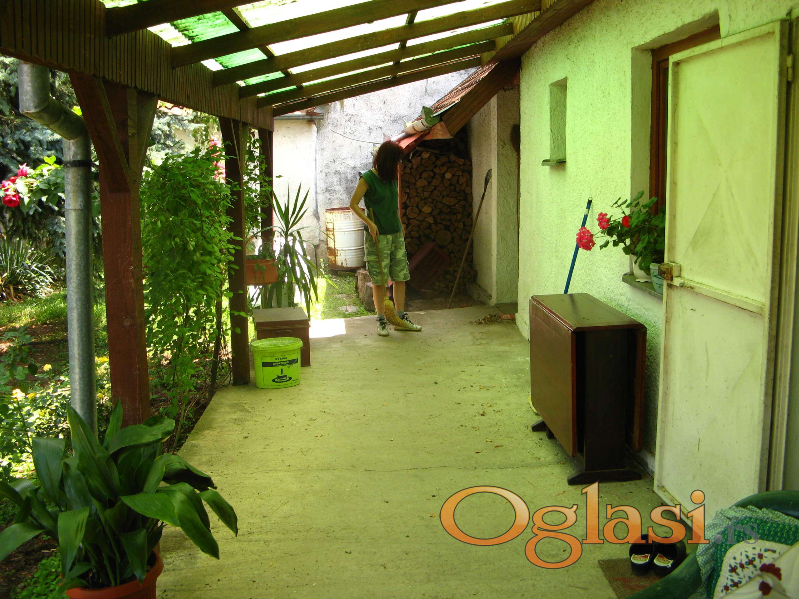 U dvorištu se nalazi odvojena letnja kuhinja, sa elementima, oko 15 kvadrata i radionica. Dozidana garaža i tavan iznad garaže sa lamperijom, tavan iznad kuhinje ima dimnjak sa pušnicom. U dvorištu su posađene ruže i drugo cveće, ima dve velike jele i dve breze. U bašti veliki orah i lešnici. Tri česme dve u dvorištu treća u bašti koja ima izlaz prema kanalu.