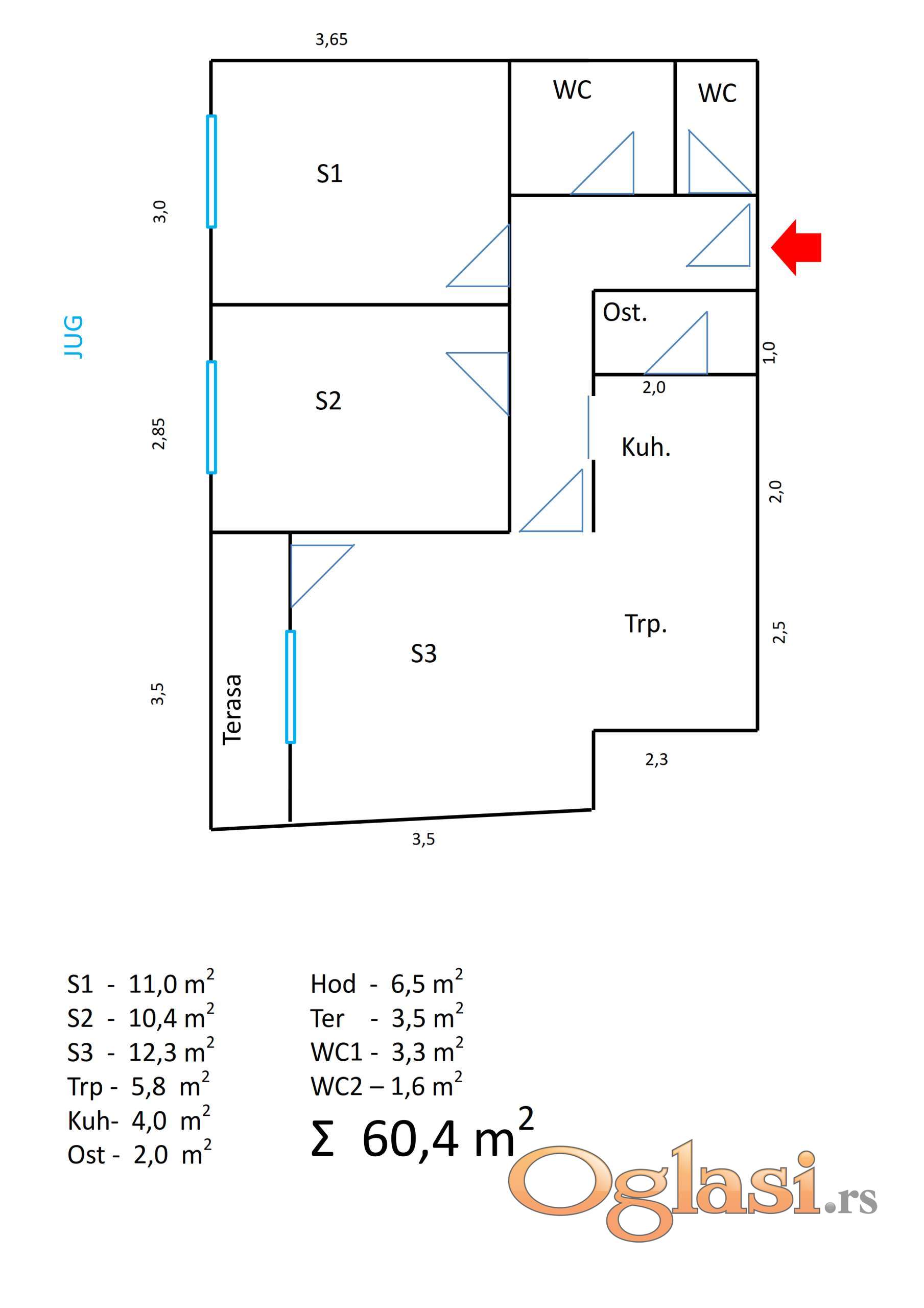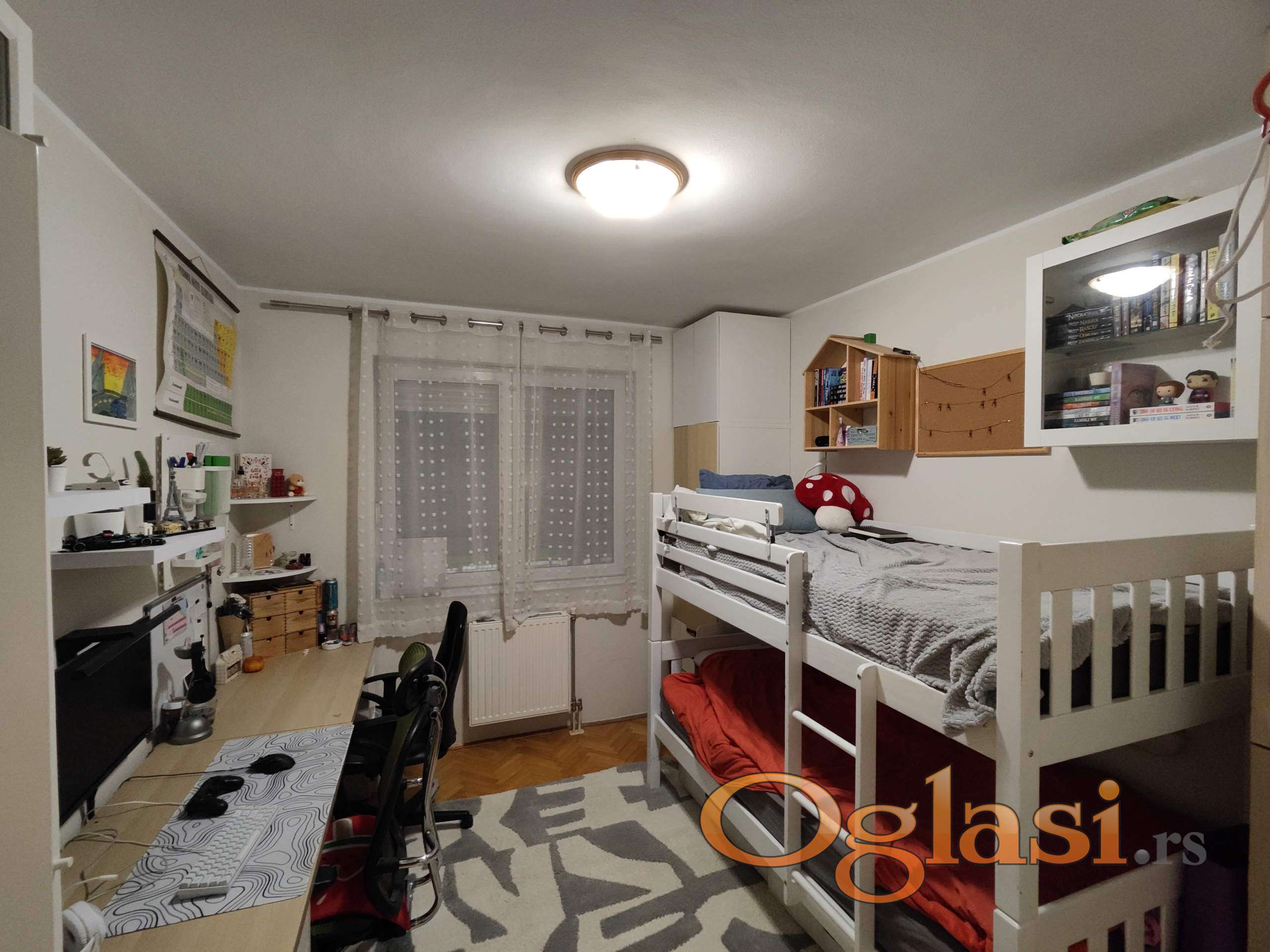 Stan se izdvaja izuzetno funkcionalnim rasporedom, sve tri sobe imaju ulaz iz hodnika, pravilnog su oblika i odličnih dimenzija, što je retkost i kod većih stanova.
