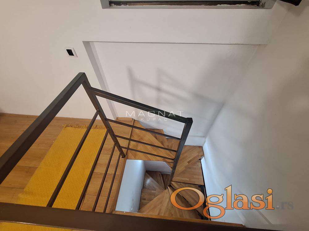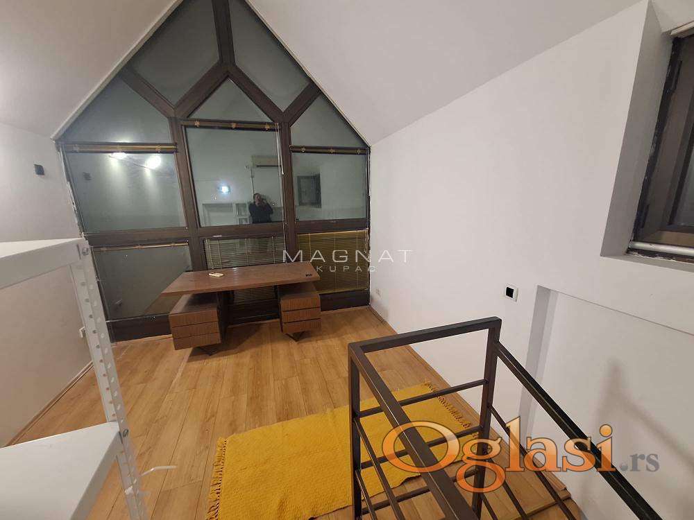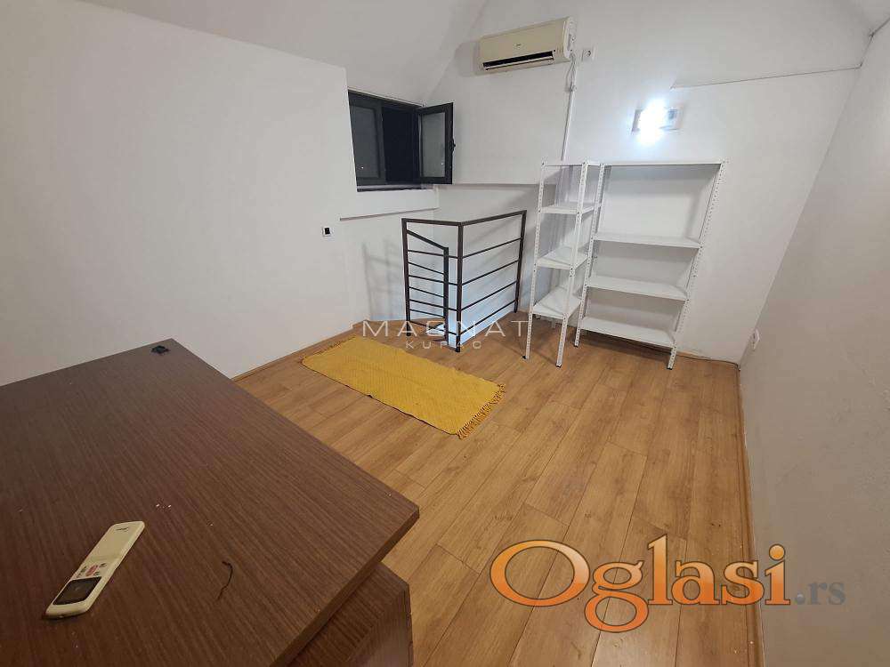 Lokal je na drugom spratu Tc Banjica, površine 24 m2 – uknjiženo + 10 m2 galerije do koje se dolazi spiralnim stepeništem.