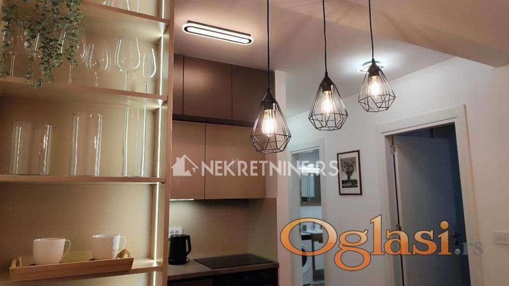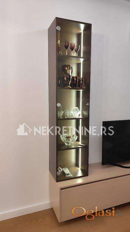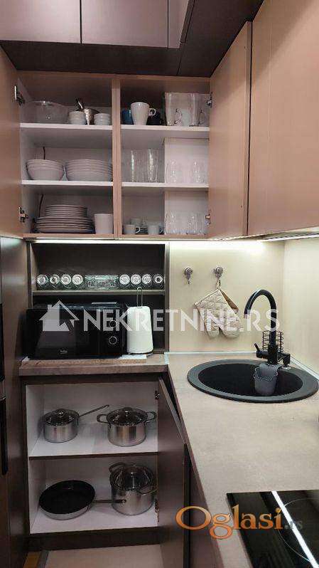 Enterijer je pažljivo projektovan sa fokusom na estetiku, funkcionalnost i komfor. Visina plafona 2.70 m daje osećaj prostranosti, dok savršeno organizovan raspored omogućava maksimalnu iskorišćenost prostora bez gubitaka kvadrature. Stan je opremljen potpuno novim nameštajem i tehnikom, pažljivo biranim kako bi zadovoljili i najviše standarde stanovanja.