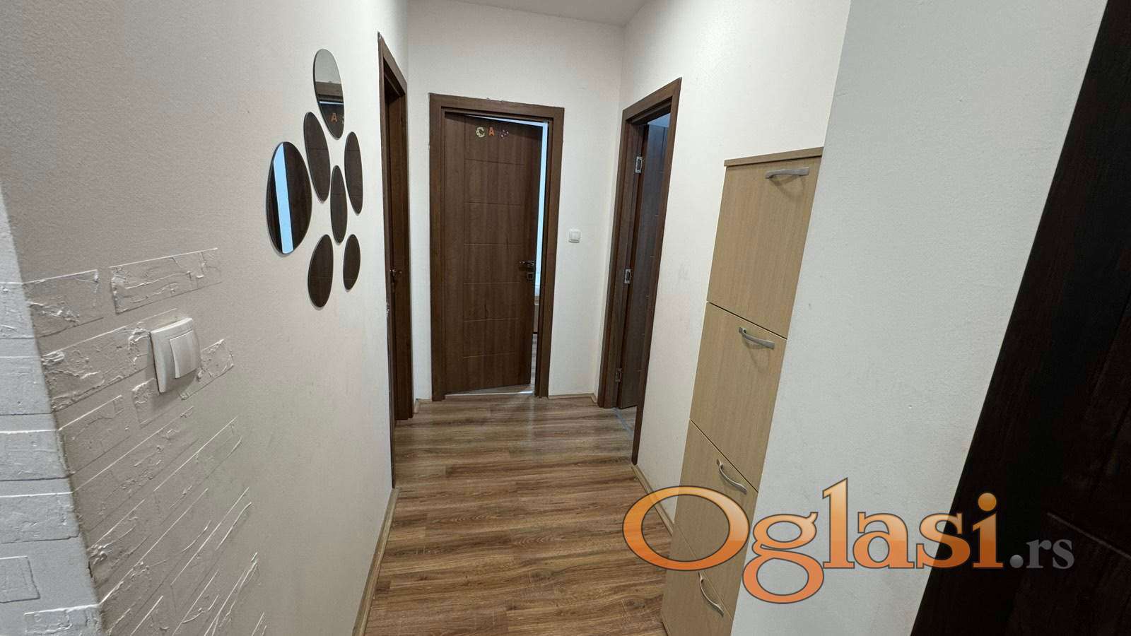 Stan ima 3 zasebne sobe, dnevnu sobu sa kuhinjom razdvojena polu zidom.
