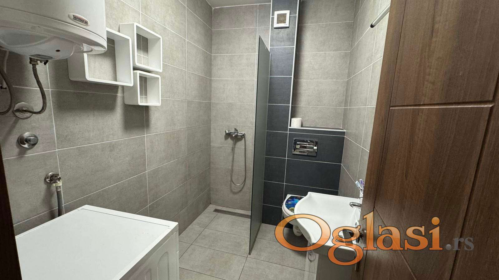 Kompletno namešten sa mašinom za sudove, veš mašinom i mašinom za sušenje.