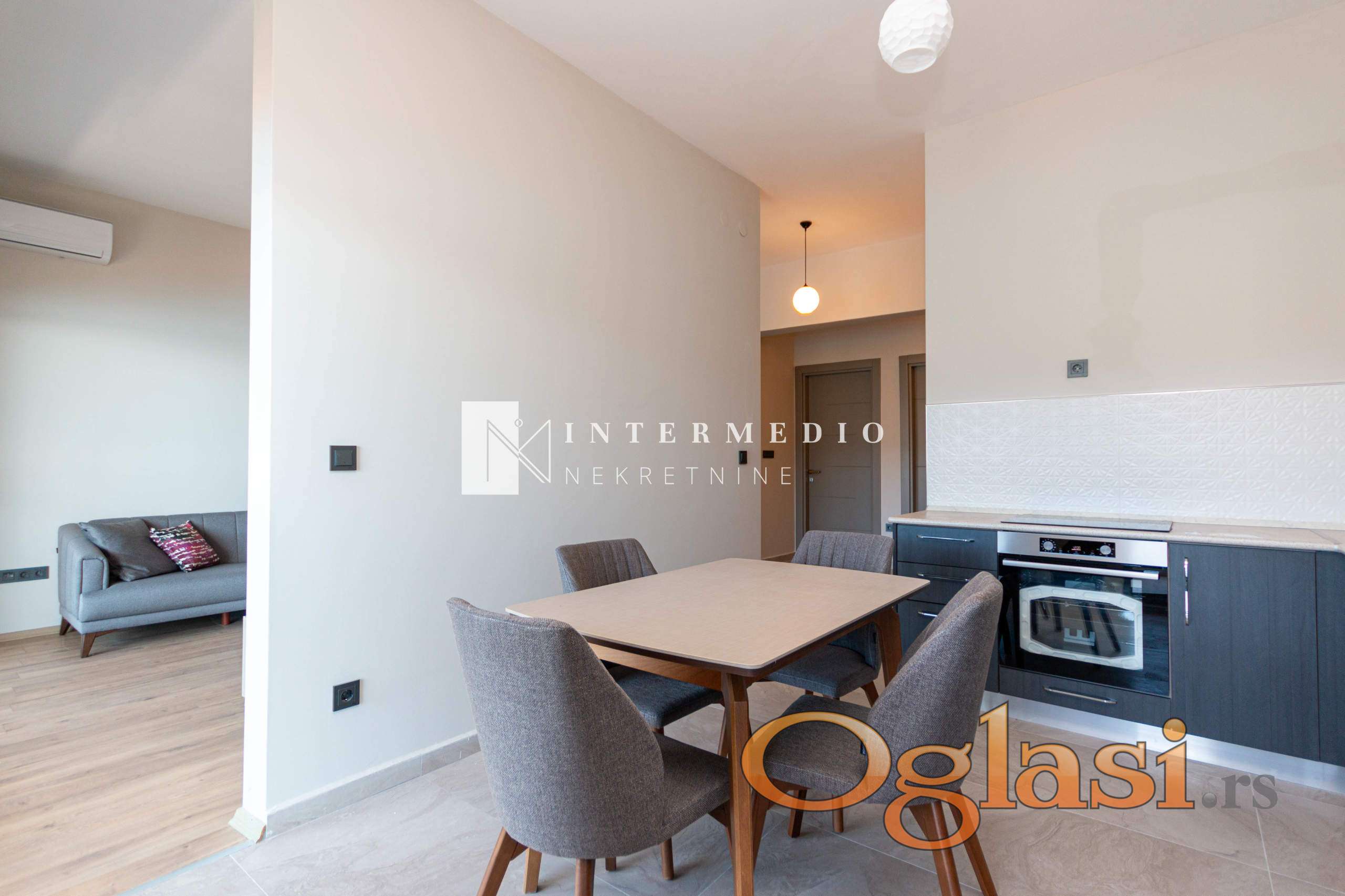 Stan se nalazi u novoizgrađenom luksuznom kompleksu i odlikuje se vrhunskim kvalitetom gradnje i pažljivo biranim detaljima enterijera. Opremljen je kvalitetnim namještajem rađenim po mjeri, pružajući maksimalnu funkcionalnost i udobnost.