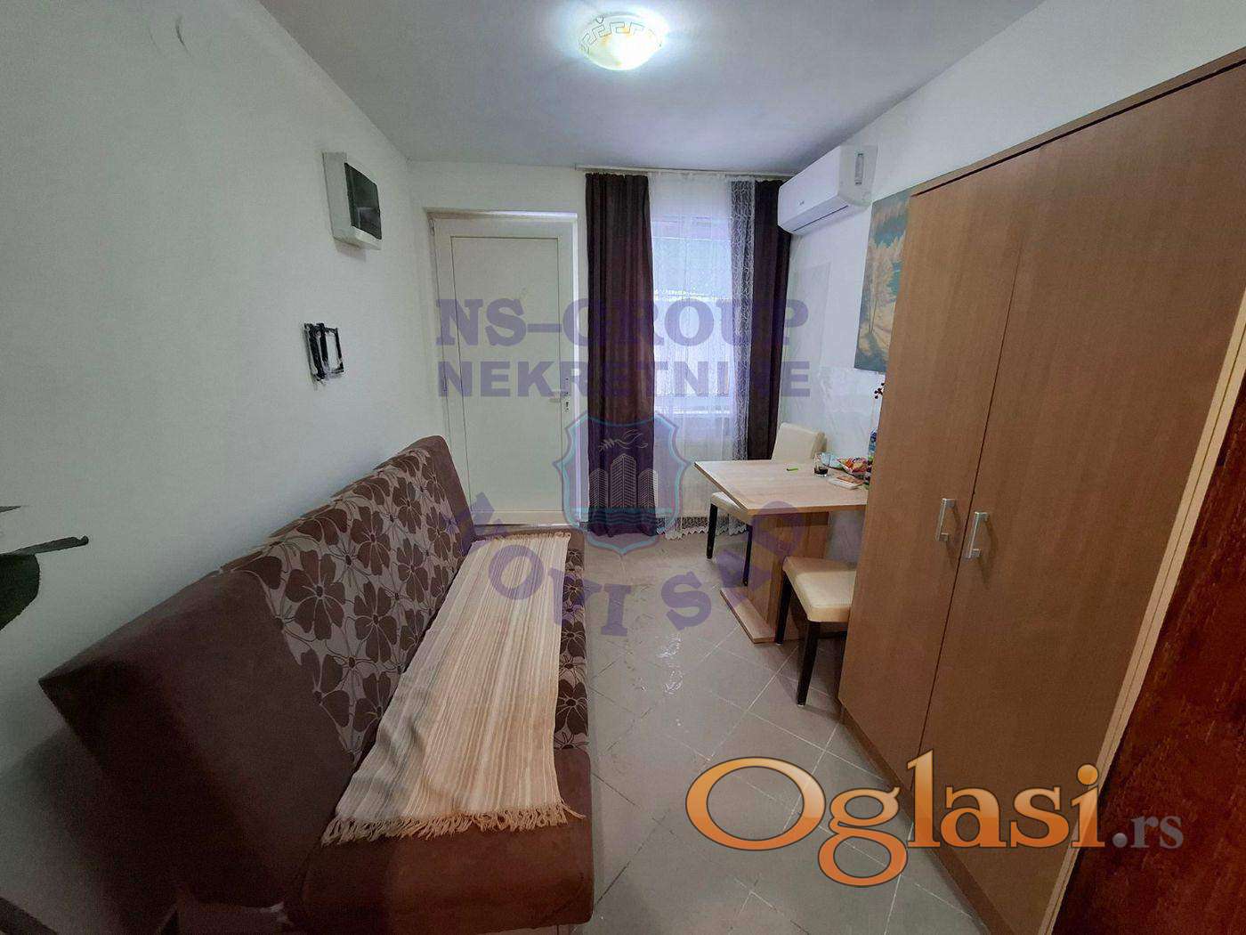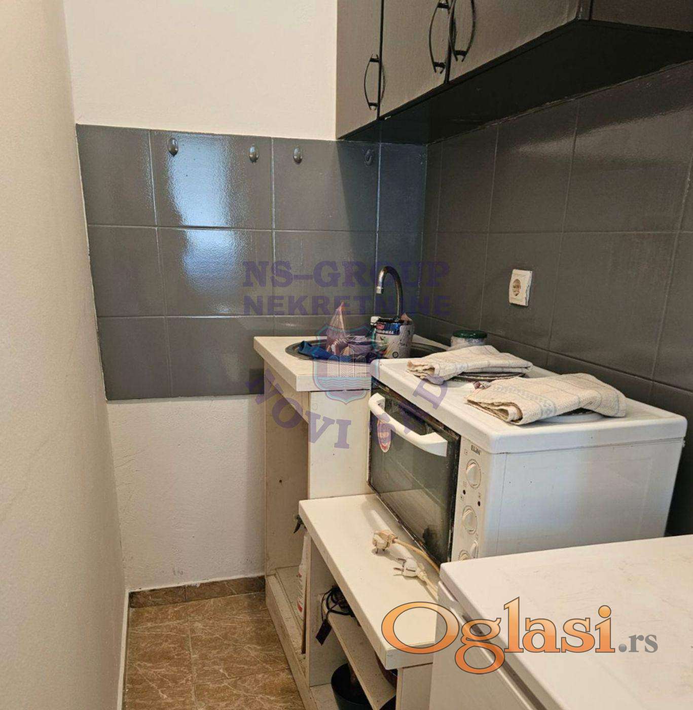 Garsonjera u prizemlju zgrade. Odlična za stanovanje kao i za iznajmljivanje. Uknjižena 1/1 na vlasnika. Grejanje je na gas, tako da su niski režijski troškovi. Za više informacija pozovite.
