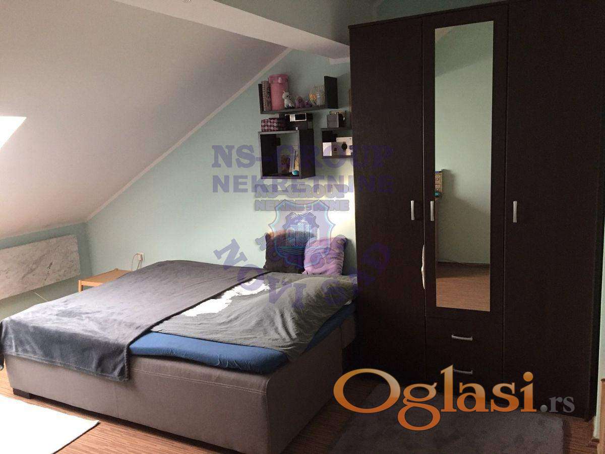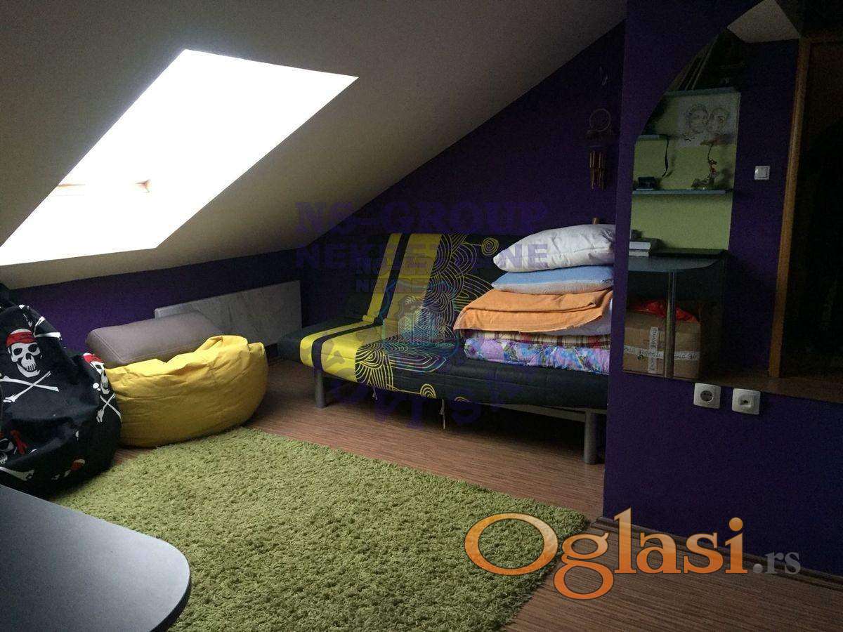 U ponudi je lep i prostran duplex na traženoj lokaciji! Zgrada stara desetak godina, u stanu hrastov parket, PVC stolarija u izuzetno dobrom stanju!! U donjoj etaži 72m2 popunjava komforna spavaća soba, dnevni boravak sa trpezarijom, kuhinja i kupatilo. Iz dnevnog boravka se izlazi na terasu sa hladnom ostavom i prelepim pogledom. Na gornjem spratu su tri spavaće sobe sa kupatilom tako da stan praktično može da finkcioniše kao dva odvojena stana. Za više informacija pozovite!