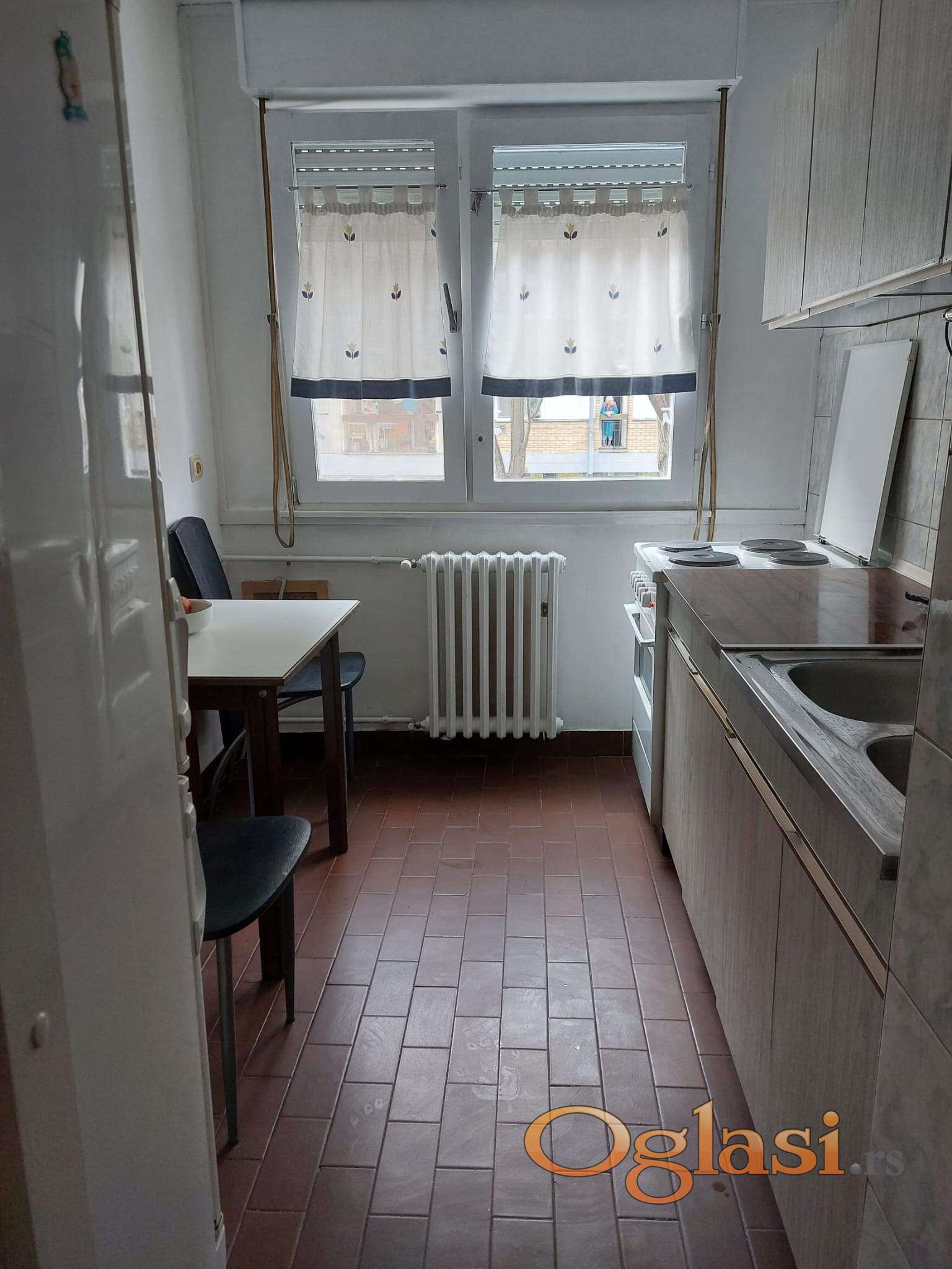 Izdajem stan koji ima odvojenu kuhinju veliku terasu sa špajzom,komotnu dnevnu sobu sa trpezarijom, kupatilo sa kadom u kraju koji je miran sa mnogo zelenila.
