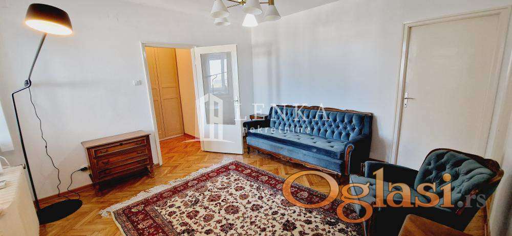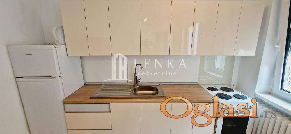 Kompletno namešten stan. Mikrolokacija je odlično povezana sa drugim delovima grada i obiluje raznovrsnim komercijalnim sadržajima. Predivni ulaz sa liftom koji Vas donose do petog sprata na kom se nalazi ovaj apartman. Na samom ulazu u ovaj predivan stan vas dočekuju sigurnosna protivprovalna I protivpožarna vrata. Iz ulaznog hodnika se ulazi komforni dnevni boravak koji je potpuno podređen maksimalnom uživanju, trpezarijski deo gde ukusi hrane I pića uz razgovor bude sva čula , elegantno opremljena svim aparatima kuhinja (sa ostavom) prefinjenog i svedenog dizajna sa par detalja ovaj kutak čine blistavim .. Drugi deo stana čine stilizovana spavaća soba sa ugradnim garderoberom koju ceo dan obasjava Sunce. Kupatilo sa kadom je izuzetno lepo i odiše funkcionalnošću dobijenom kroz izabrane boje i podržano toplim materijalima tako da deluje opuštajuće, pun konfor dobijen je sa odvojenim toaletom..Pogled sa lođe je divan i umrujući. Sam enterijer je opremljen svim potrebnim elementima , kvalitetnim podovima, keramikom, spoljašna PVC stolarija sa komarnicima i , unutrašnja vrata visokog kvaliteta sa Italijanskom kvakom I bravom. Idealan stan koji pruža miran i konforan život. U suterenu zgrade se nalazi podrum. U dvorištu zgrade postoji ograničen broj parking mesta za stanare . Zakupac placa proviziju 50%