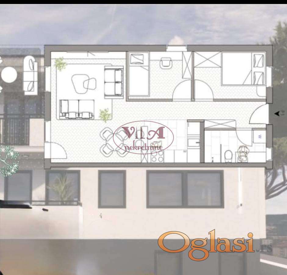 Prodaje se sjajan i lepo projektovan dvoiposoban stan, na dobroj i mornoj lokaciji. Stan je izgradjen od najkvalitetnijih materijala, projektovan tako da svaki kvadrat bude maksimalno iskoriscen. Stan se sastoji od dnevne sobe, dve spavace sobe, kuhinje, kupatila, kao i terase. Stan se nalazi u prizemlju i ima svoj deo dvorista. Stan je knjizen kao garaza. Grejanje je na norveske radijatore. Zavrsetak radova je predvidjen za Januar 2027. Agencijska provizija iznosi 3% na ugovoreni iznos. Kontakt tel. 0646586099
