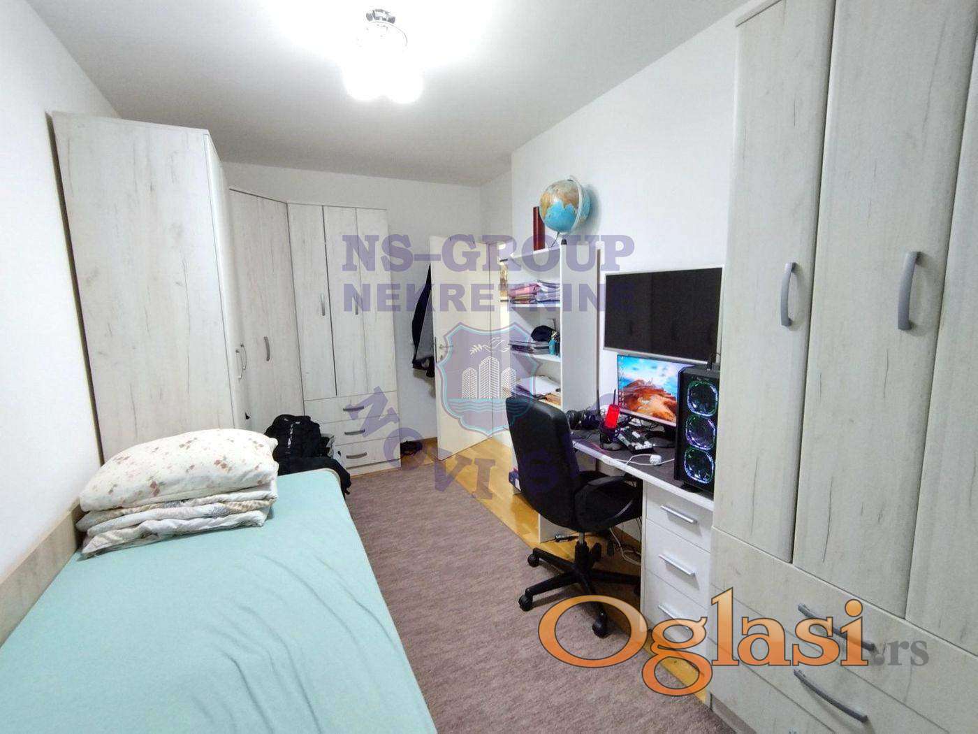 Četvorosoban, noviji stan, kompletno opremljen kvalitetnim nameštejem i tehnikom, koji ostaju u ceni (osim TV-a, računara, slika i ličnih stvari). Možete se odmah useliti bez gubljenja vremena oko opremanja stana. Izuzetno funkcionalnog rasporeda, spavaći deo i kupatilo su odvojeni degažmanom što obezbeđuje dodatni mir i privatnost. U stanu postoji zaseban WC. Nekretnina ima lepu, komfornu terasu sa ostavom, idealnu za uživanje i dodatni prostor za odlaganje. Nalazi se u blizini Doma zdravlja , vrtića i autobuskog stajališta (linije broj 6). Grejanje je podno na toplotne pumpe, što garantuje znatno niže mesečne troškove. Ispred zgrade se nalazi dosta parking mesta. Stan je uknjižen 1/1.