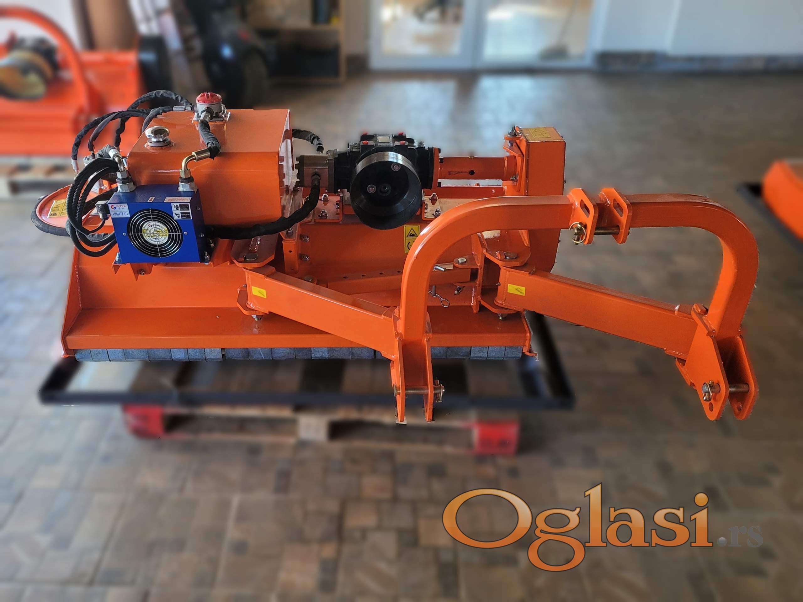 - Zatvoreni hidraulični sistem – hidraulična pumpa, sigurnosni hidraulični ventil, hidromotor pogona diska za malčiranje, rezervoar hidrauličnog ulja sa filterom, hladnjak hidrauličnog ulja sa električnim ventilatorom,..