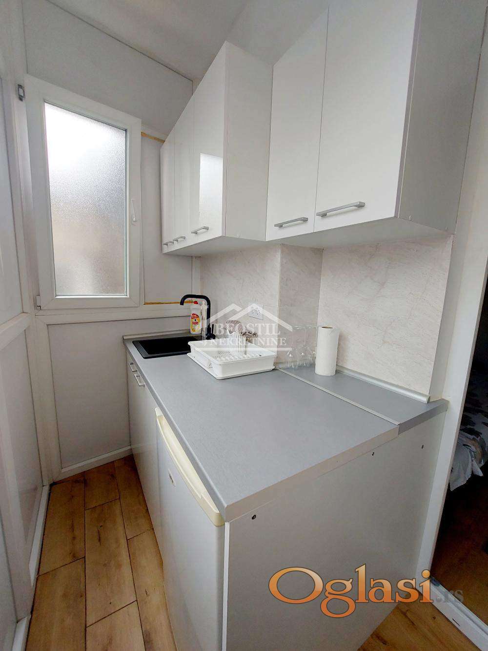 Stan je potpuno renoviran i opremljen, sastoji se od dnevne, spavaće sobe, kuhinje, kupatila i ostave.