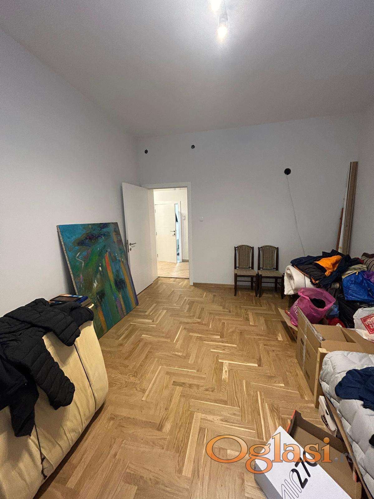 Stan je pre tri meseca kompletno renoviran, zamenjene su sve električne instalacije, stavljena je nova stolarija (dvoslojno staklo), nova kuhinja, plakari, sobna,ulazna vrata, novi parket.