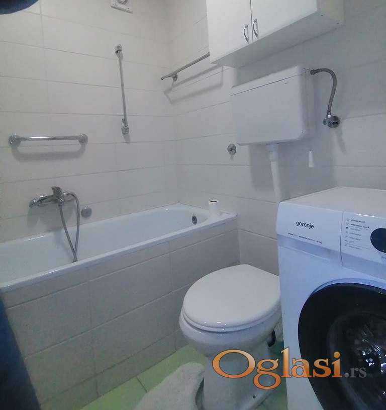 Izdaje se kompletno namešten jednoiposoban noviji stan 38m2. Stan je na 2 spratu zgrade sa liftom na Telepu - Bulevar Patrijarha Pavla. Ima odvojenu spavaću sobu sa bračnim krevetom, u dnevnom boravku jer ugaona garnitura na razvlačenje. Klimatizovano, ima terasu. Centralno gradsko grejanje, informatika oko 9000. Može na cenu 300e ako je ugovor na minimum 1 godinu. Useljivo odmah. Za ozbiljne zakupce na duži period, depozit obavezan u visini zakupa. Nije za strane državljane. Kućni ljubimci nisu dozvoljeni. Kontakt: 063536286.