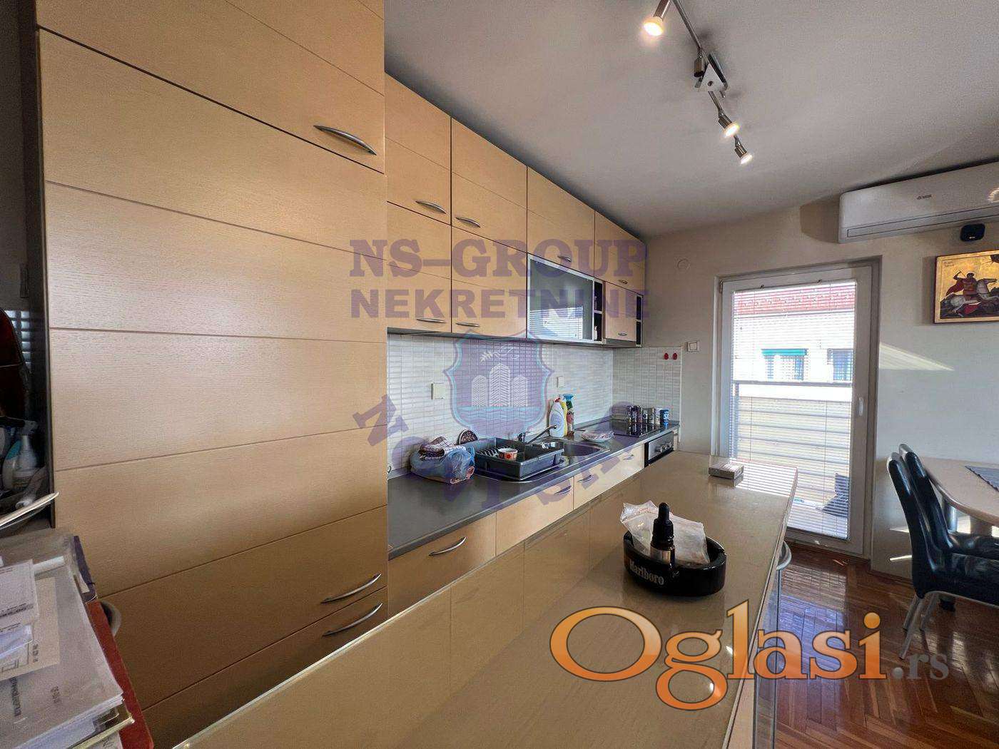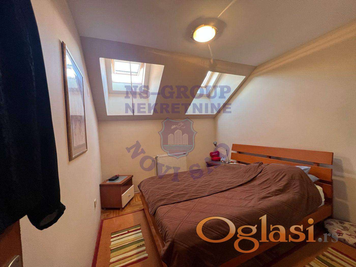 Prodaje se izuzetno komforan porodičan stan-dupleks, na fantastičnoj lokaciji. Ukupna površina je 102m2, donjea etaže 71m2, gornja 31m2(korisne, a podne cca 60). Stan je izuzetno svetao. Nalazi se u blizini Bulevara Oslobođenja kao i samog centra Novog Sada. Osnovna, srednja škola, dom zdravlja, sup, prodavnice, pijaca se nalaze u neposrednoj blizini. Nekretnina ne zahteva apsolutno nikakva ulaganja, prodaje se kompletno nameštena. Stan je odmah useljiv po isplati. Postoji mogućnost kupovine prizemne garaže ispored koje je moguće parkirati još jedno vozilo.
