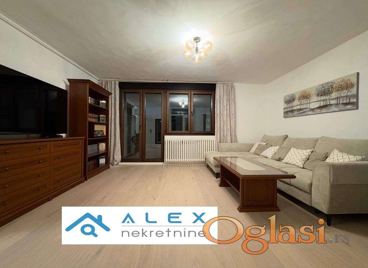 U ponudi agencije je odličan potpuno renoviran najkvalitetnijim materijalima trosoban stan stvarne površine 70 m2(terasa nije ušla u kvadraturu) na Novom Naselju u mirnom delu u ulici Bulevar Jovana Dučića okružen zelenilom, parkovima i u blizini svih gradskih sadržaja. Stan se nalazi na 5/6 spratu stambene zgrade sa liftom i sastoji se od ulaznog hodnika, dnevnog boravka, odvojene kuhinje, manje i veće spavaće sobe, terase i kupatila. Prodaje se sa potpuno novim nameštajem. Stan je uknjižen 1/1 i moguća je kupovina putem stambenog kredita. U cenu je uračunata i agencijska provizija. Za više informacija kontaktirati ALEX Nekretnine 069-50-11-004