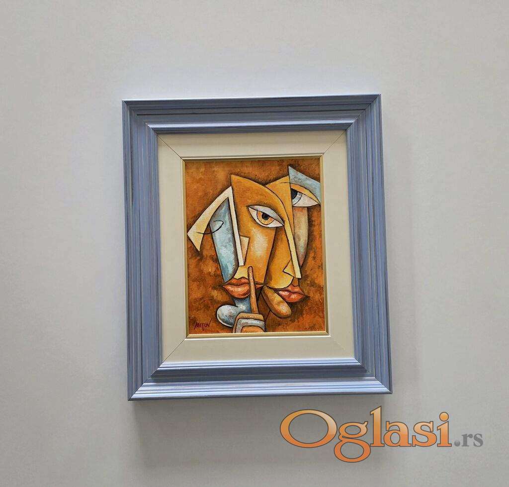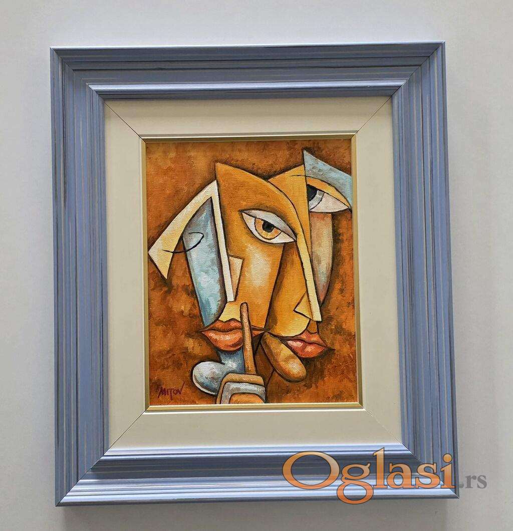 Ulje na platnu Cuvaj tajnu, prelepo umetnicko delo. Slika je uramljena u jako lep ram, dimenzije slike sa ramom 41 x 36. Privatna kolekcija.