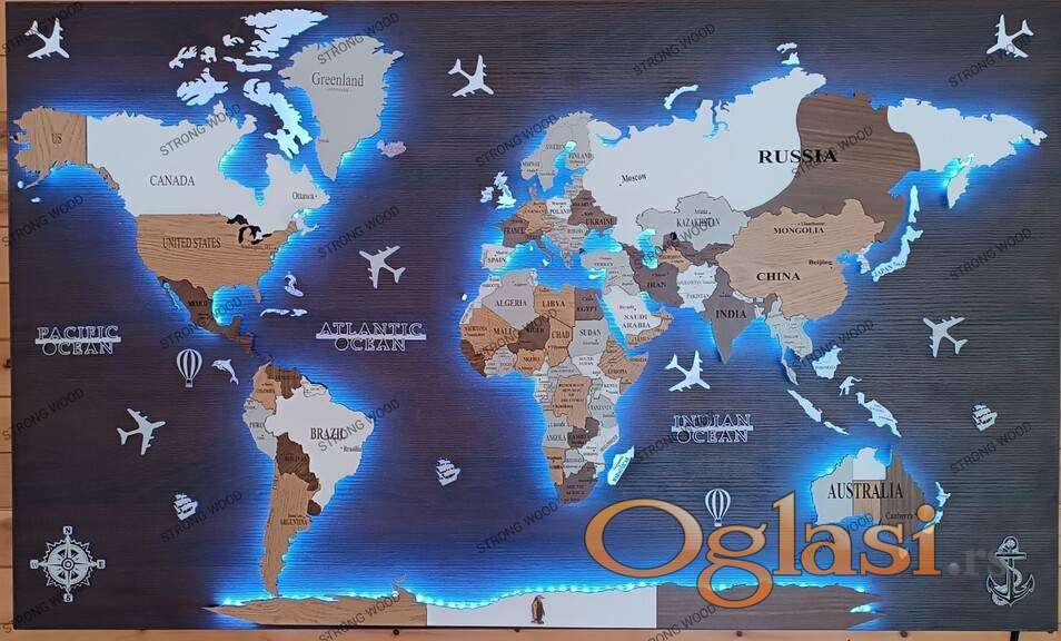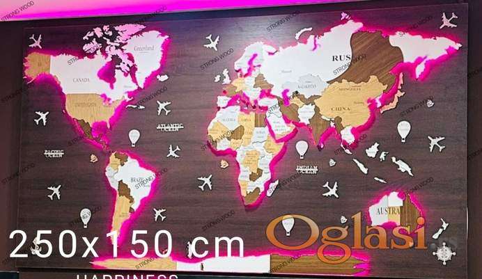 Dekorativna LED mapa sveta 250x150 akcija
