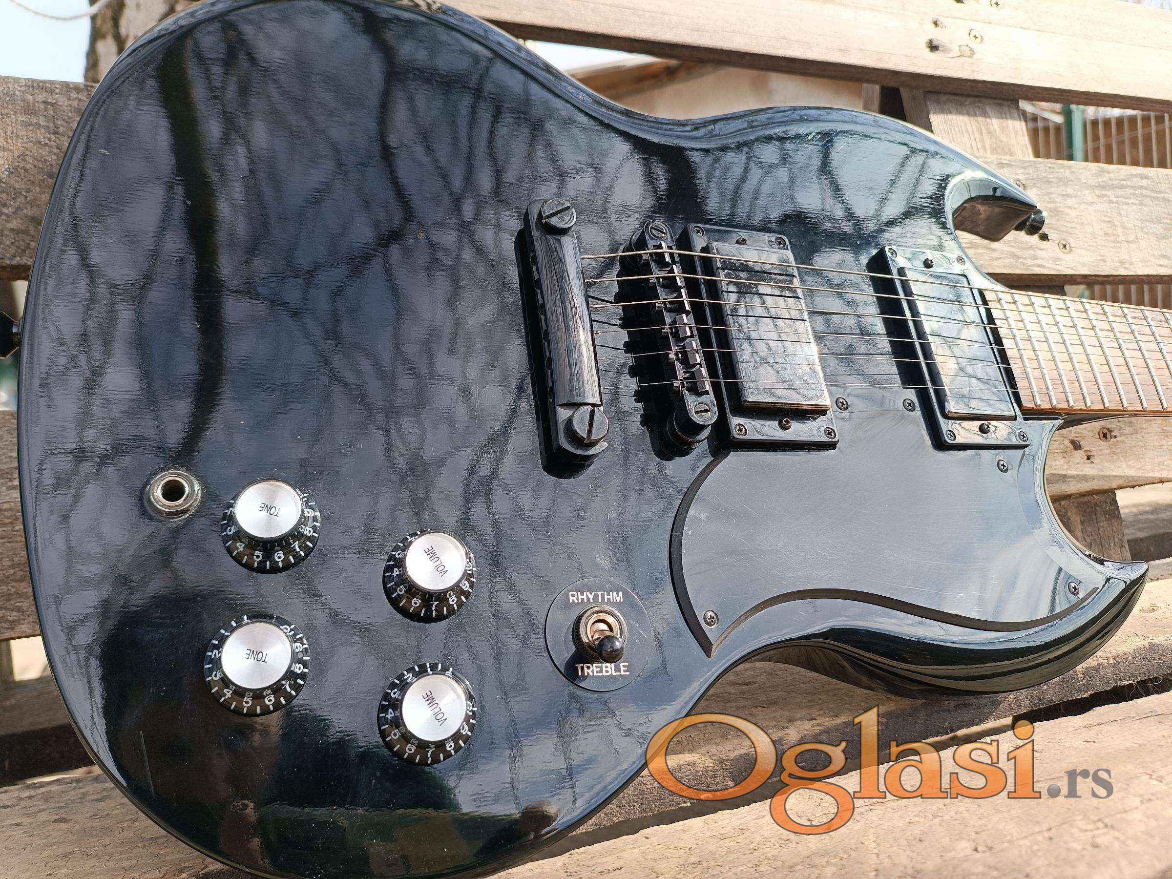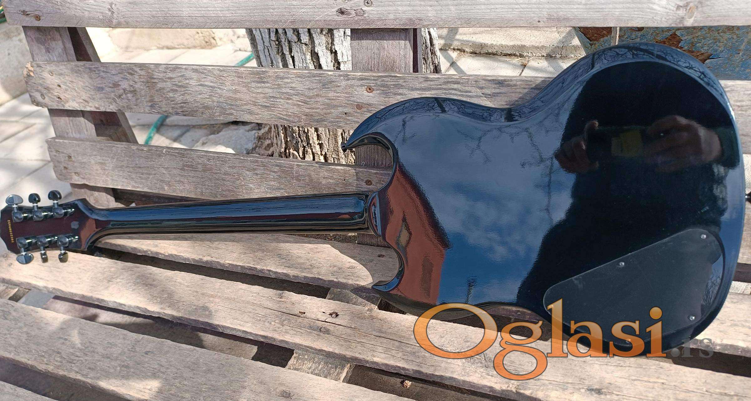 Očuvana gitara, u fabričkom stanju, malo korišćena sa potpisom Black Sabbath gitariste. Po specifikaciji, gitara ima Gibson magnete, Grover čivije. Cena je za keš, u zameni dogovor. PS: moguća prodaja gitare bez magneta. Preporučujem lično preuzimanje, ukoliko gitaru šaljem kurirskom službom, onda ide avansna uplata na račun, pa slanje instrumenta.