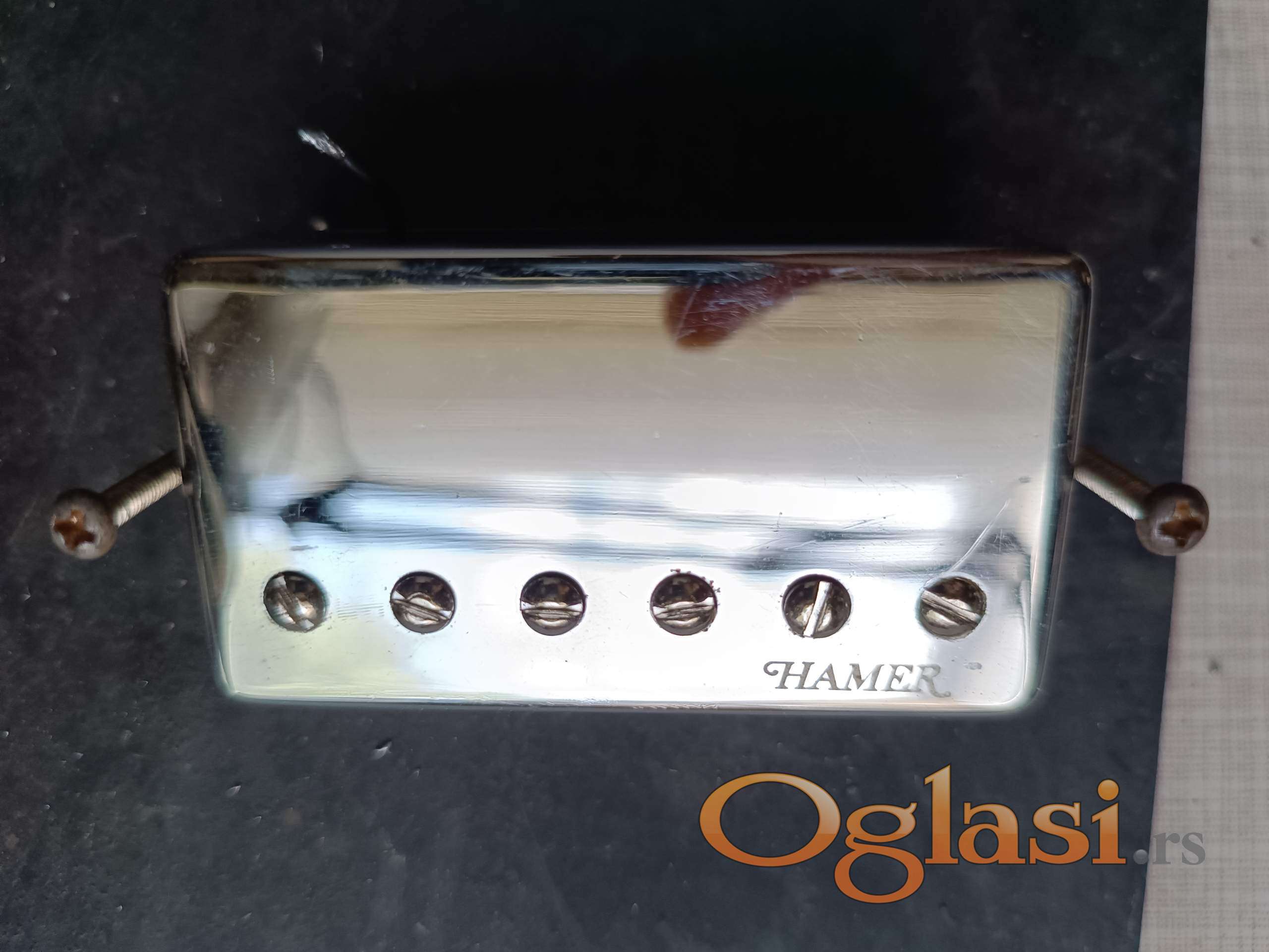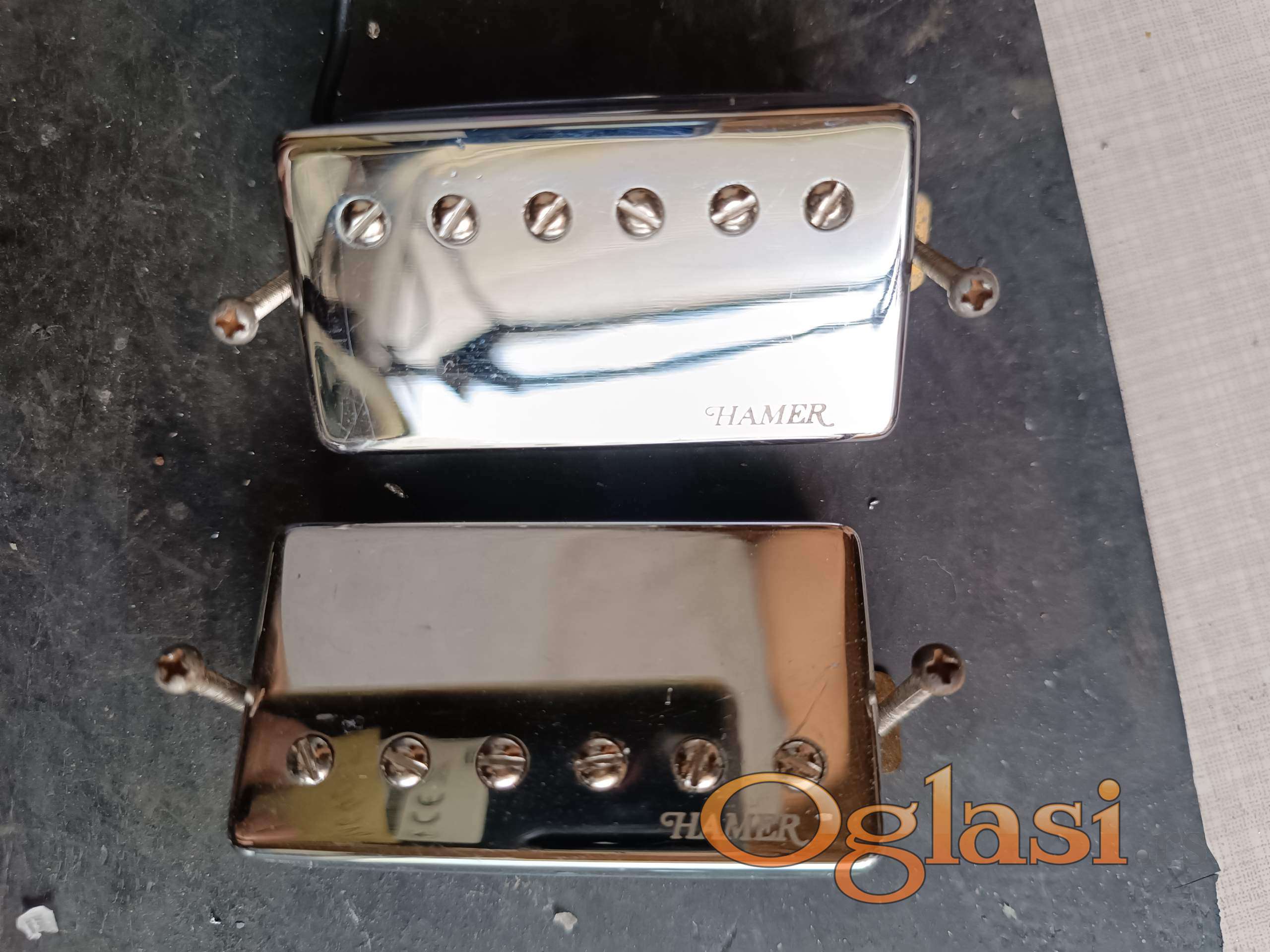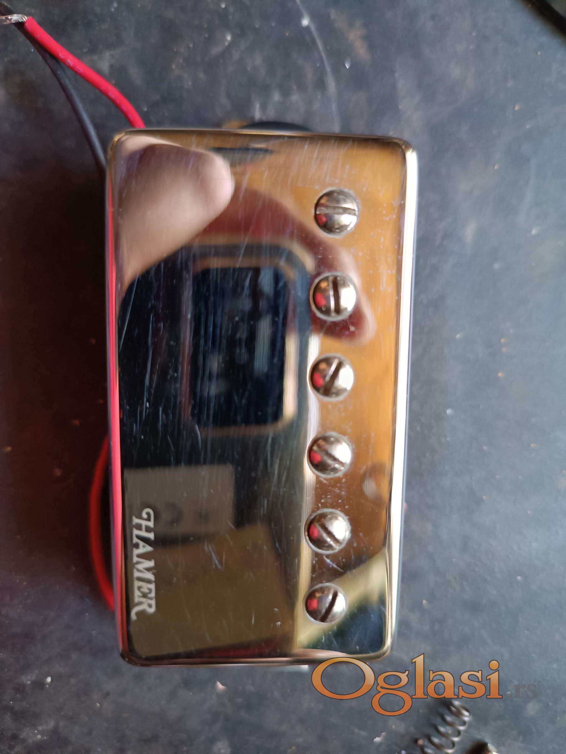Vrhunski set Hamer magneta, skinutih sa Hamer Explorer gitare. Ton je jasan, moćan, za modernu svirku. Magneti su voskirani, tako da ne mikrofonišu na high gain pojačalu. Na priloženim fotografija možete videti izmerene vrednosti otpora (DC Resistance) u Kilo ohmima (Neck magnet je oko 9K, Bridge je oko 13K).