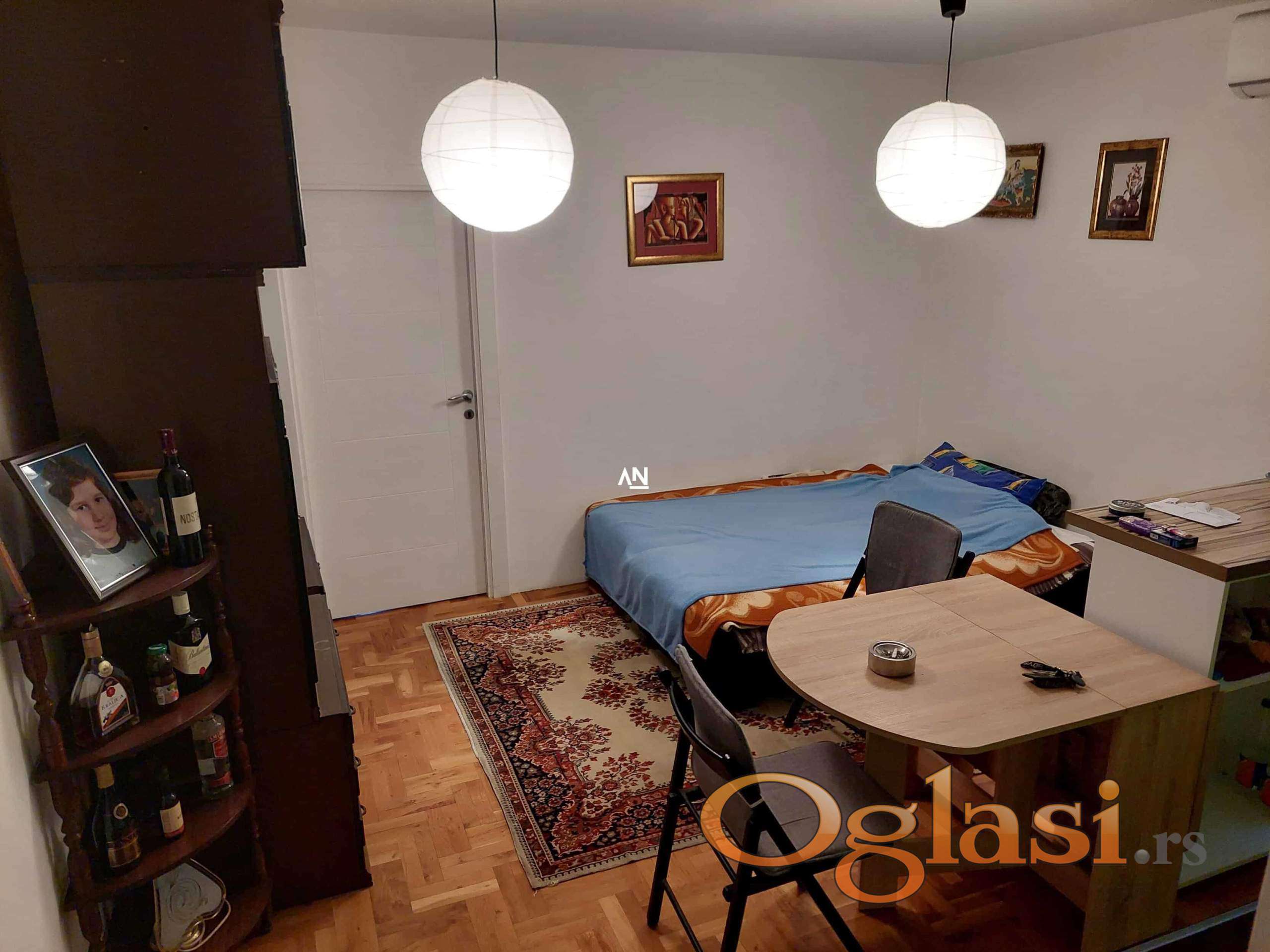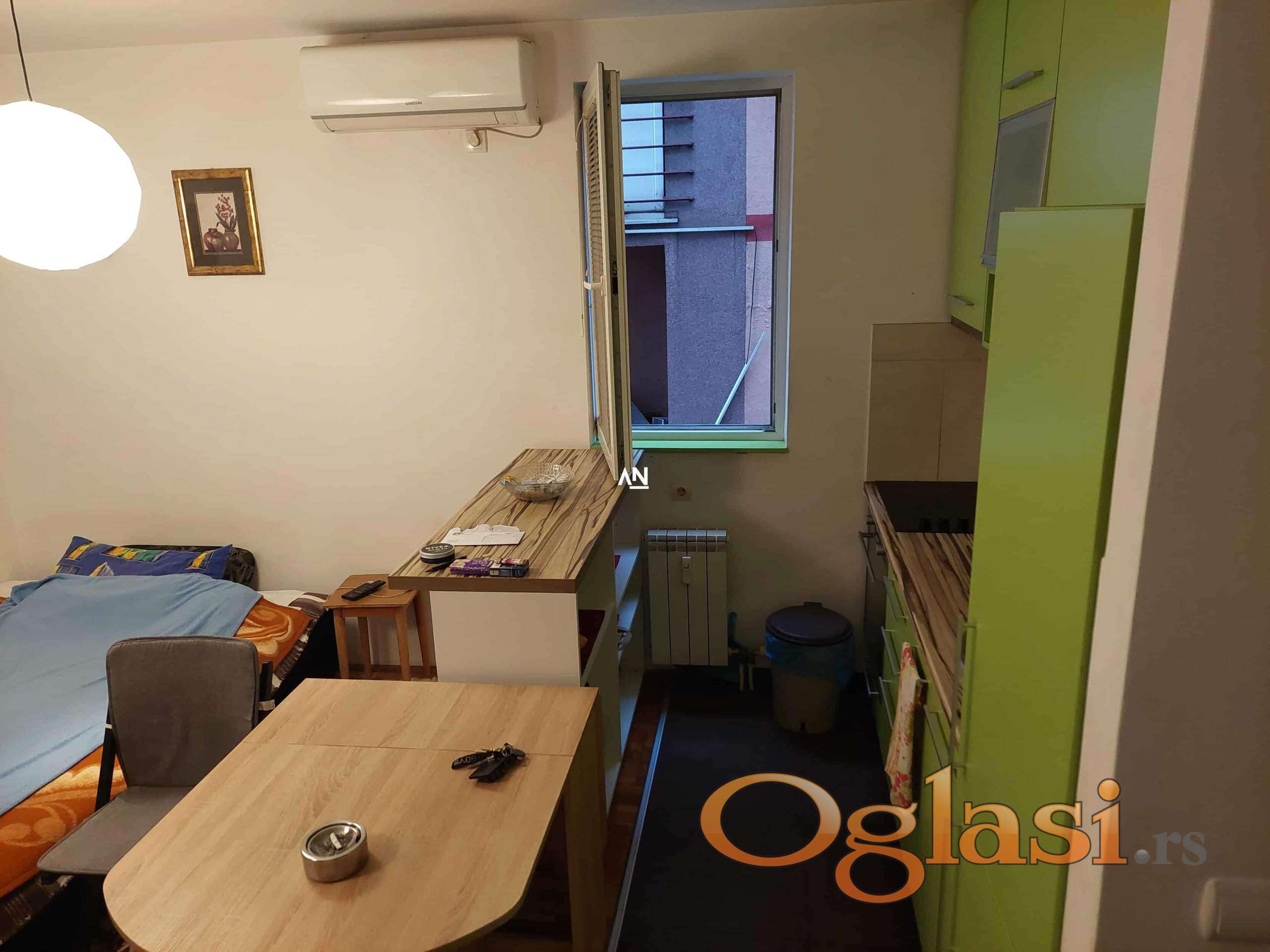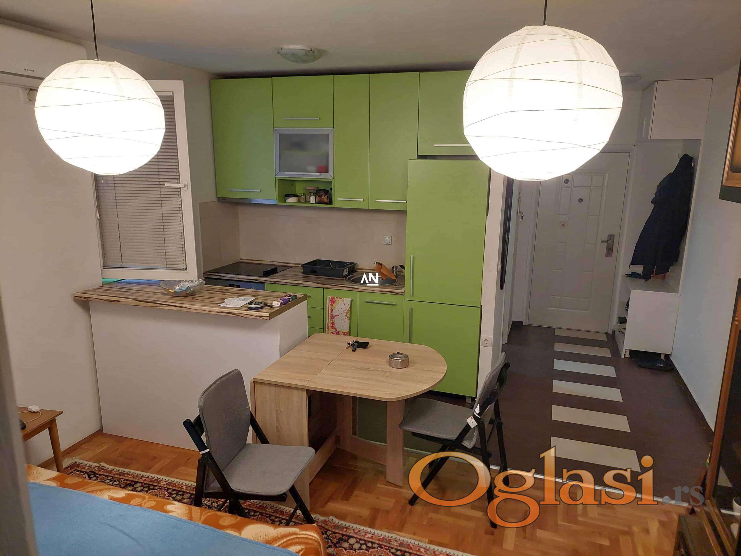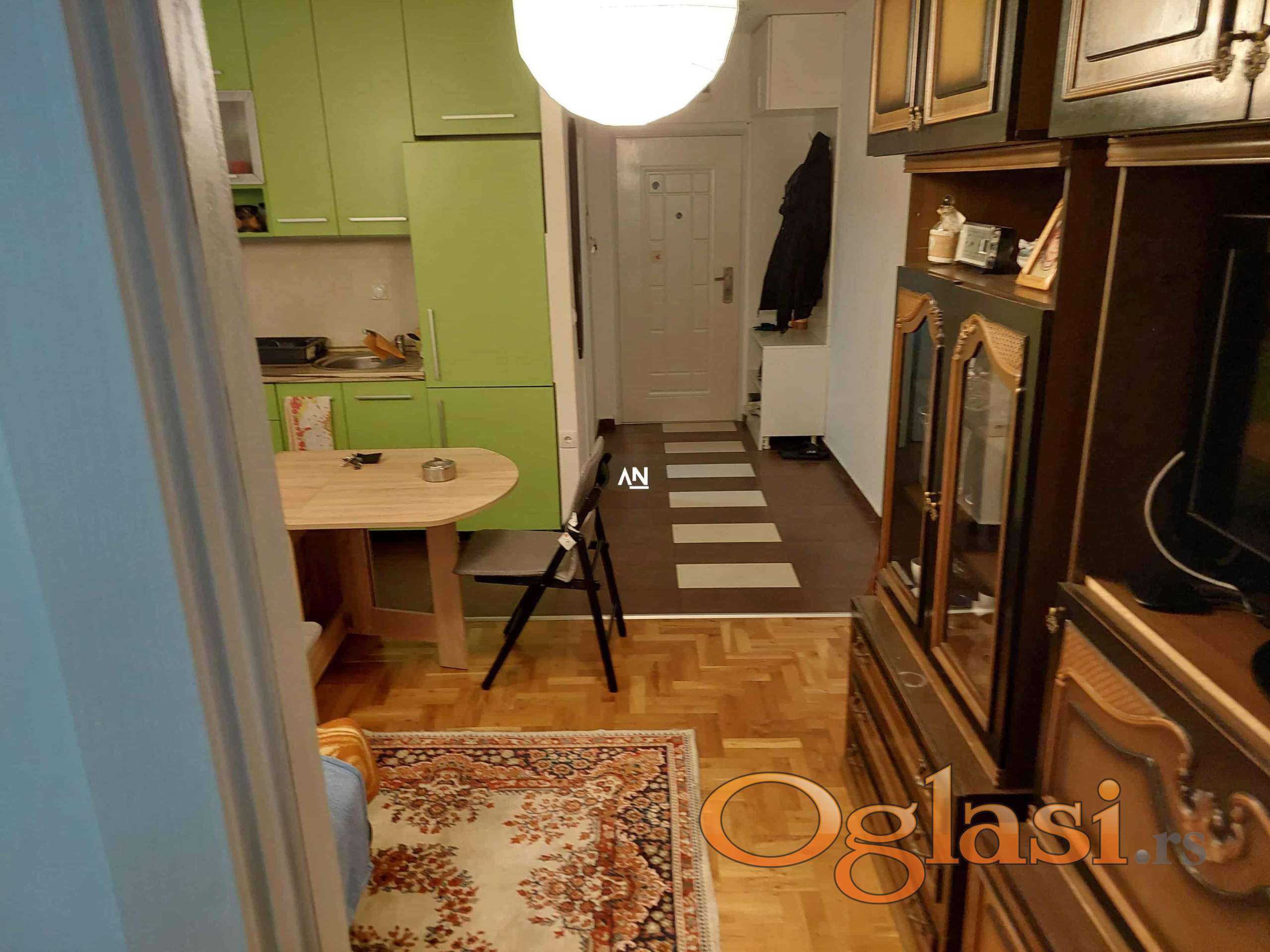 Odličan 1.5 stan na prvom spratu, novije stambene zgrade. Sastoji se od hodnika, prostranog kupatila,dnevne sobe sa kuhinjom i trpezarijom, spavaće sobe, i terase. Bez ulaganja, ušuškan, u blizini svih potrebnih sadržaja. CG po utrošku(kalorimetri). Uknjižen na 35m2, koja je i grejna površina, i terasa 4m2. U stanu ostaje kompleta kuhinja sa ugradnim elementima. Agencijska provizija 2%.//Agent:060/1691159//