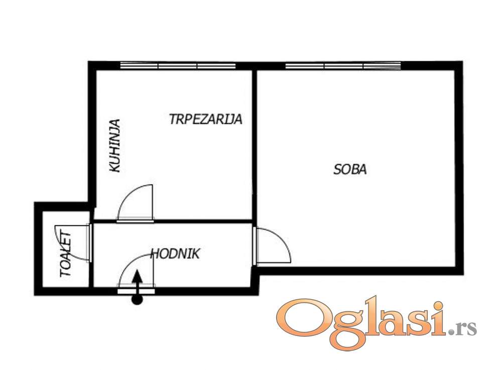 sastoji od ulaznog dela i prostorije od 10m2. Stan je u izvornom stanju, dok dodatna prostorija može biti funkcionalna za različite potrebe.