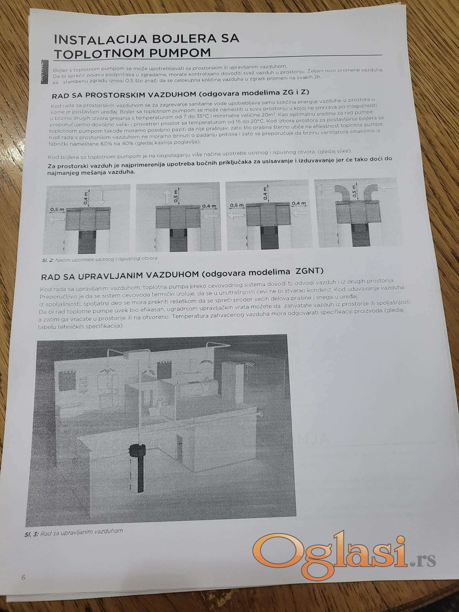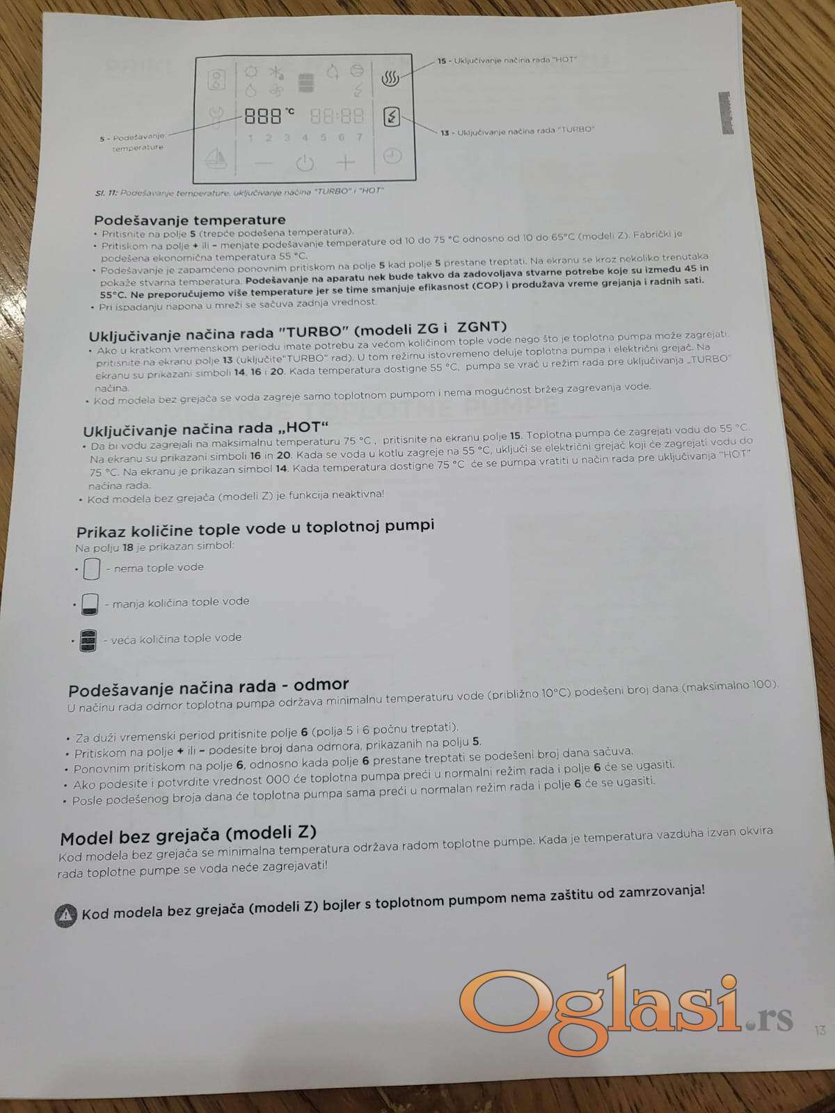 - Radni princip: vazduh–voda, sa integrisanim rezervoarom i kompresorskim sklopom u gornjem delu greje vodu do 65c° preko toplotne pumpe, plus dva grejaca od po 1kw usled potrebe za vecim koriscenjem tople vode od 65c° do 75c° greje sa grejacima