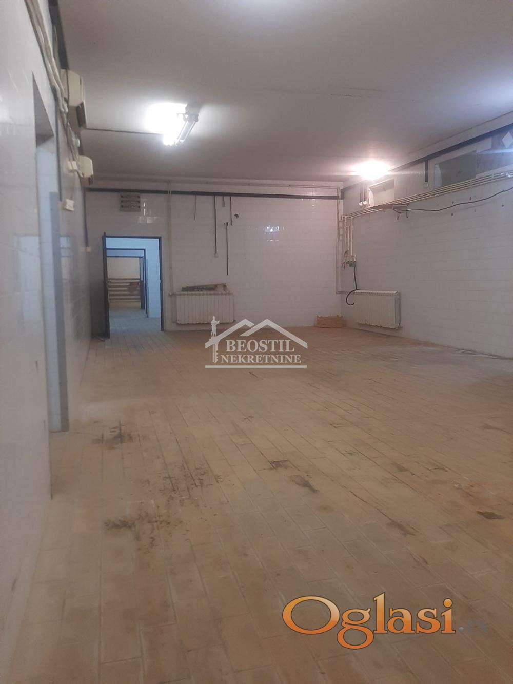 Visina 3.4m, zidovi pločice, pod pločice. Pogodan objekat za bilo koji vid proizvodnje, magacinski prostor itd.