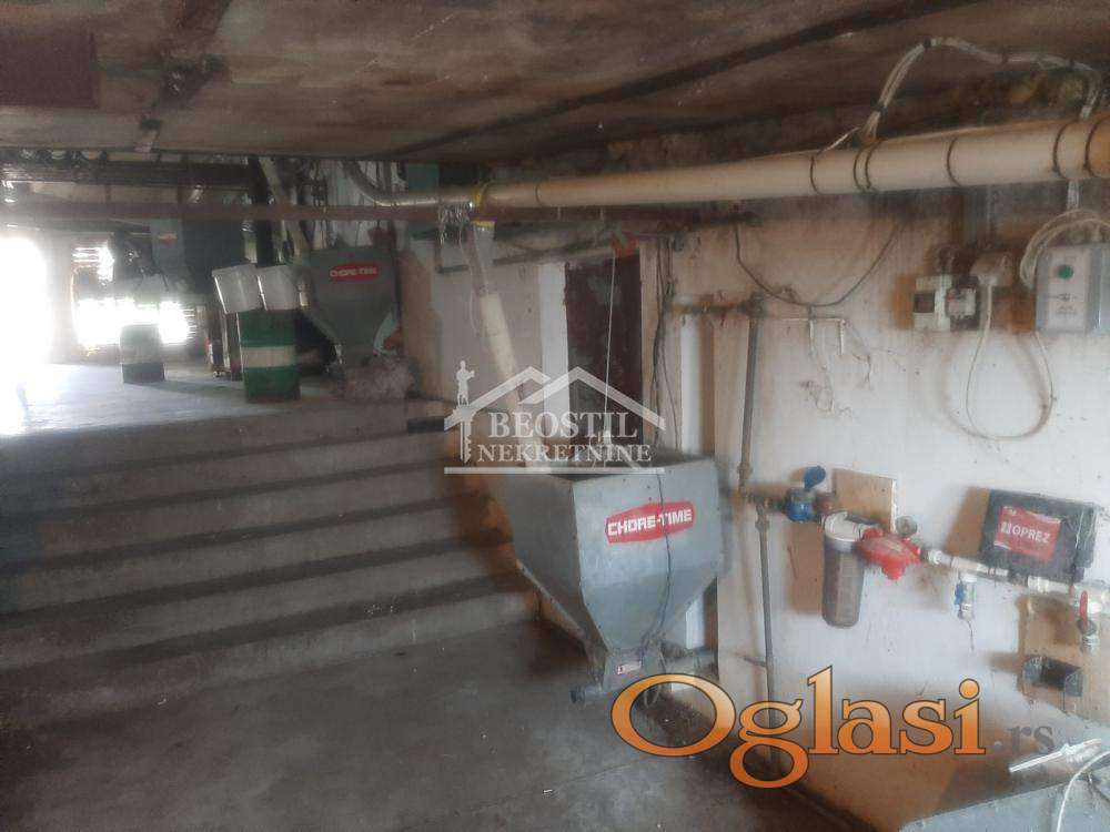 Površine 800 m2, širina 12m, dužina 49m, bez stubova, drugi nivo 5m širine, 49m dužine. Mogućnost podizanja čelične konstrukcije i podizanja visine po potrebi, za druge namene.