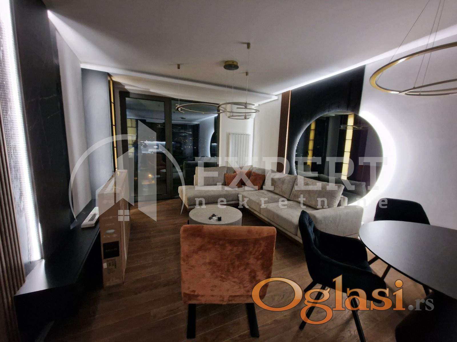 Izdaje se luksuzno opremljen stan moderno dizajniran u Planet Residence površine 54m2 na sedmom spratu u zgradi sa liftom. Zgrada poseduje uređeno dvorište na mezaninu i recepciju na ulazu. Sastoji se od ulaznog hodnika, trpezarije sa kuhinjom, dnevne sobe, spavaće sobe, kupatila i terase. Grejanje je centralno. Komplet je opremljen nameštajem i svom potrebnom belom tehnikom.Lepo je osvetljen i orijentisan. Stan ima i svoje garažno mesto. Izdaje se ozbiljnim zakupcima na duži vremenski period. Obavezan depozit u visini jedne mesečne kirije.