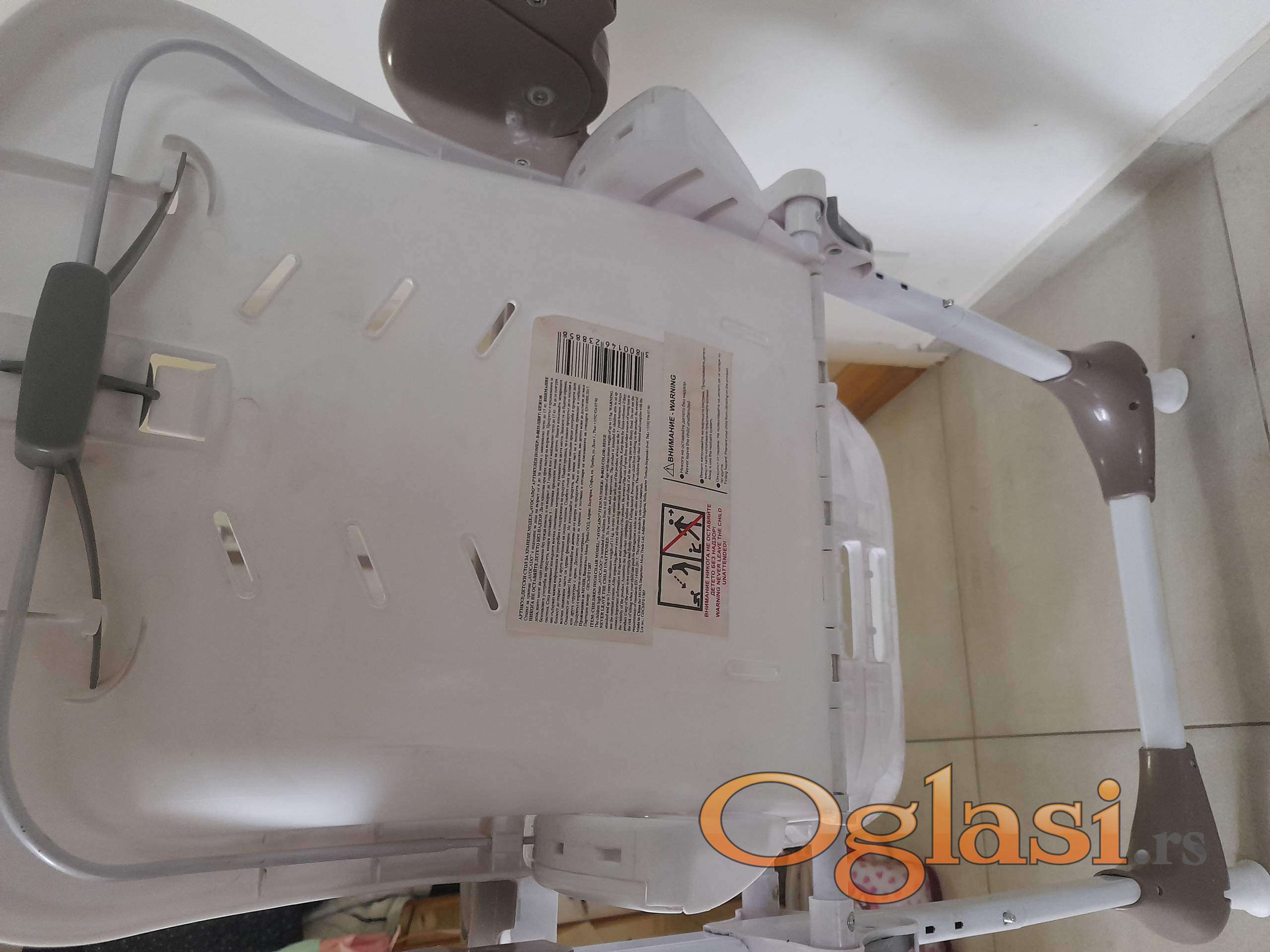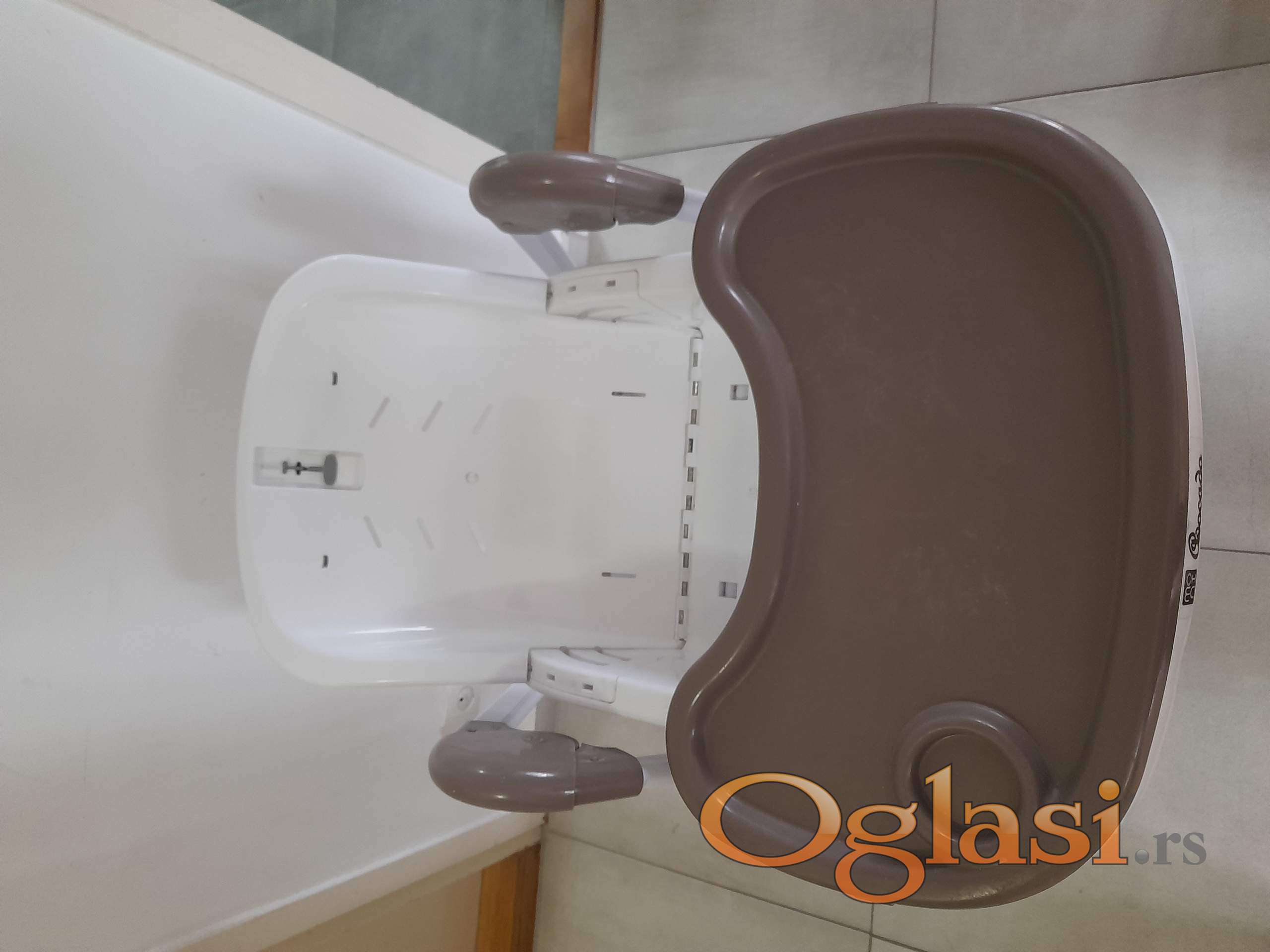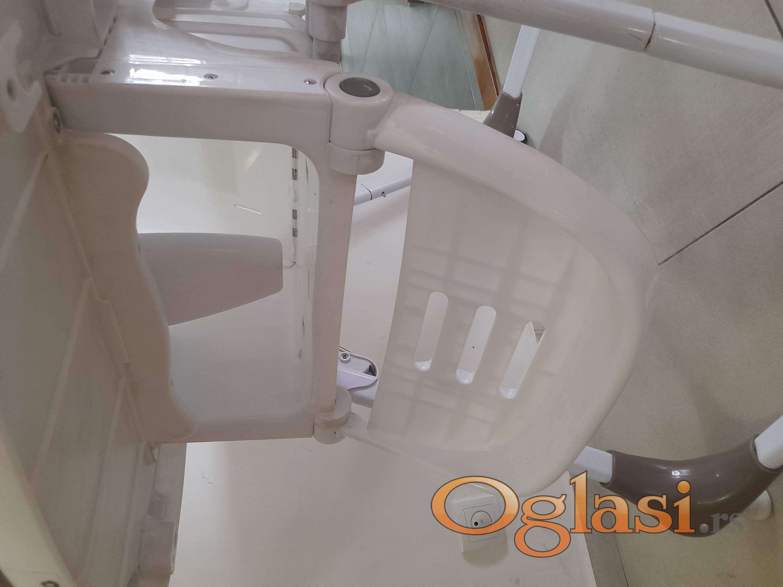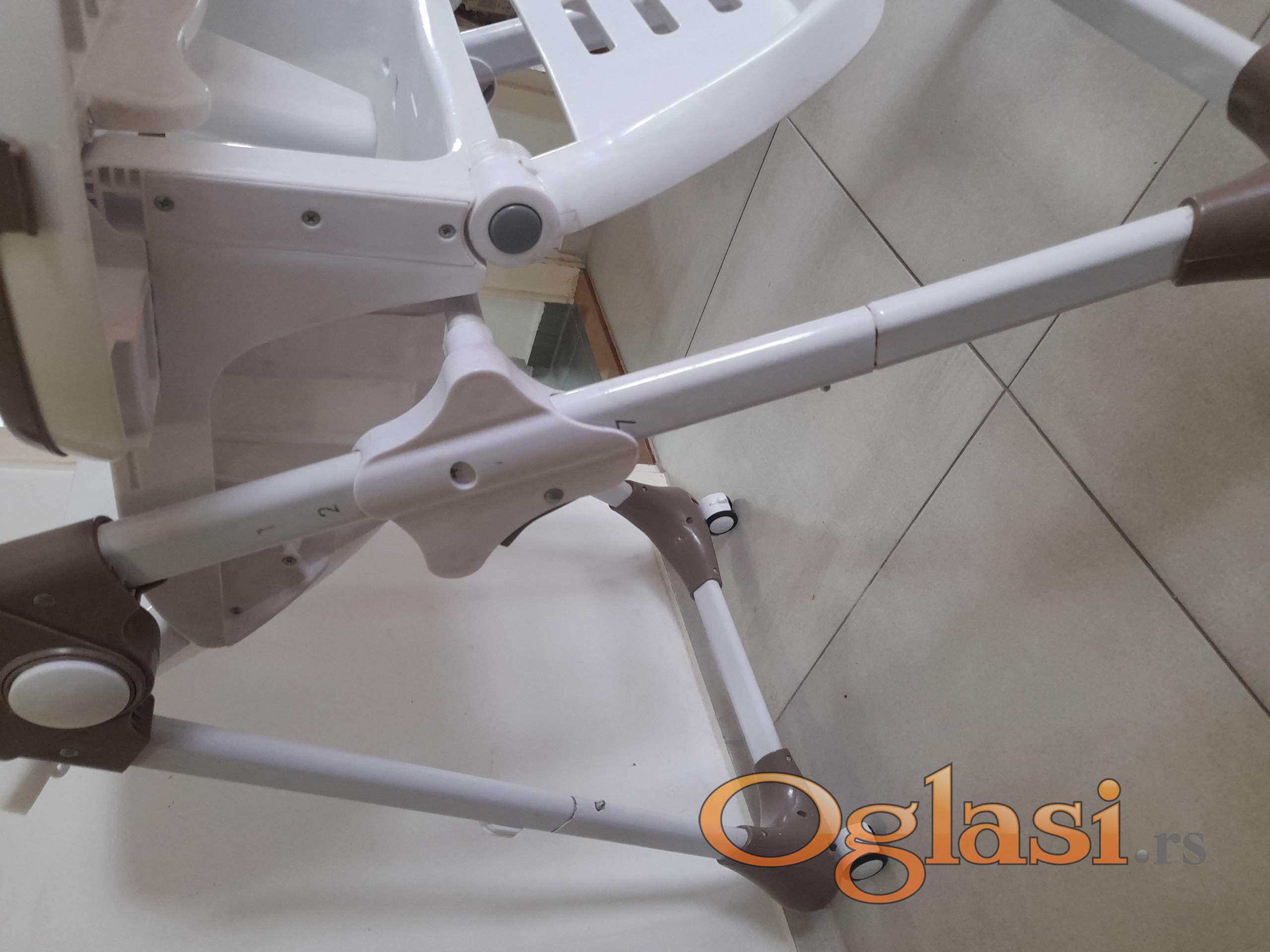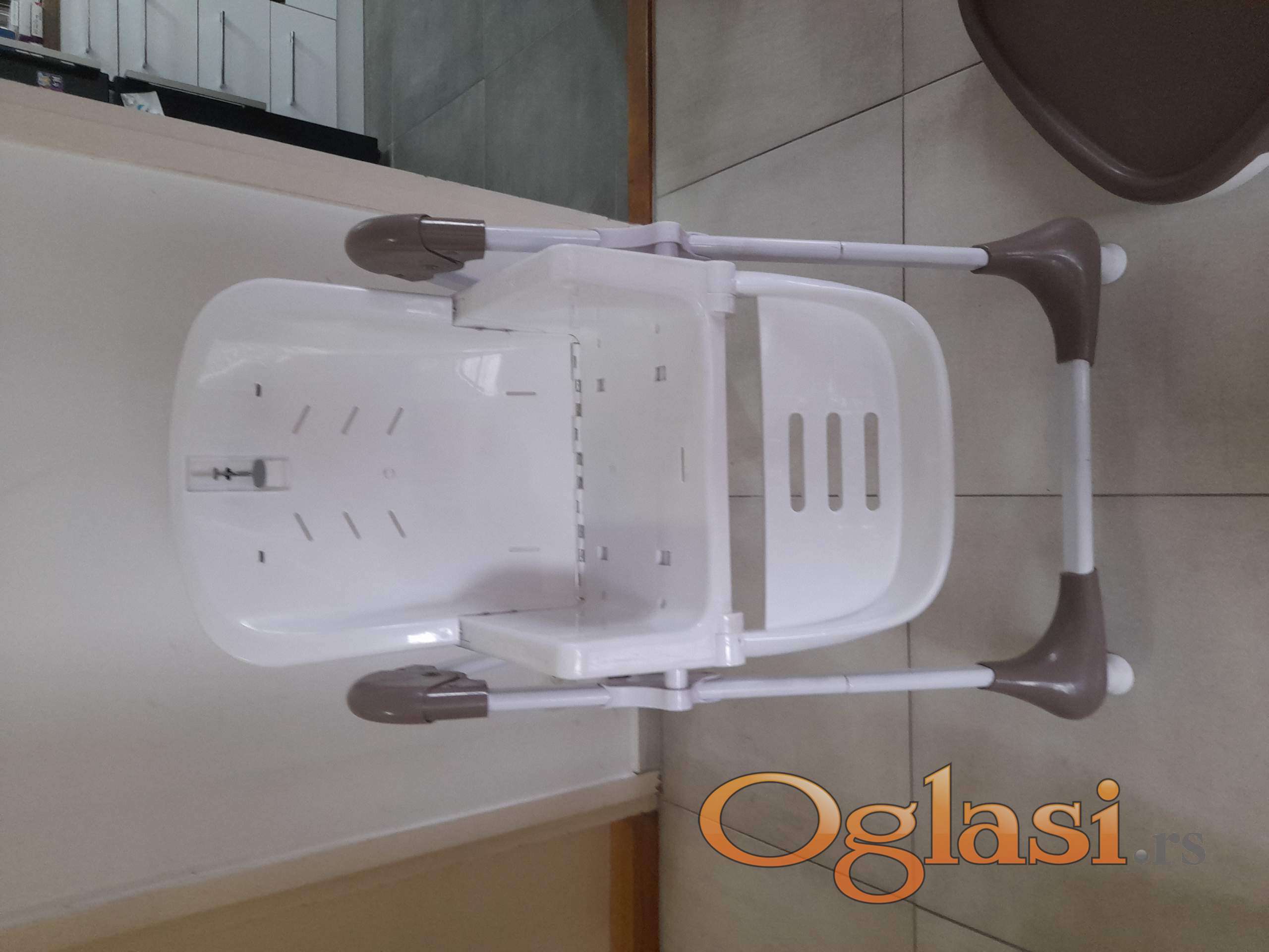 Zgodna hranilica koja se može podešavati 7 položaja visine, naslon u 3 položaja, oslonac za noge u više položaja. 2 tacne koje se skidaju. Kao nova, samo nema navlaku